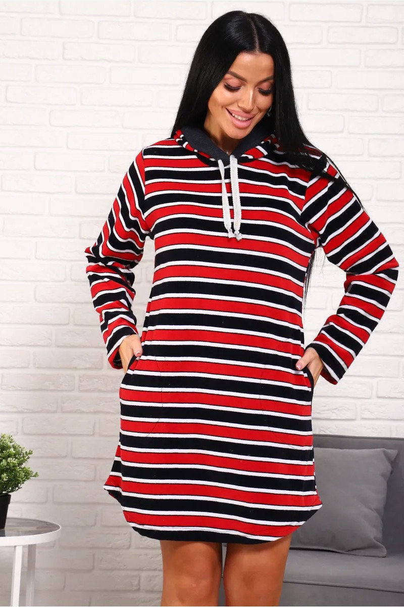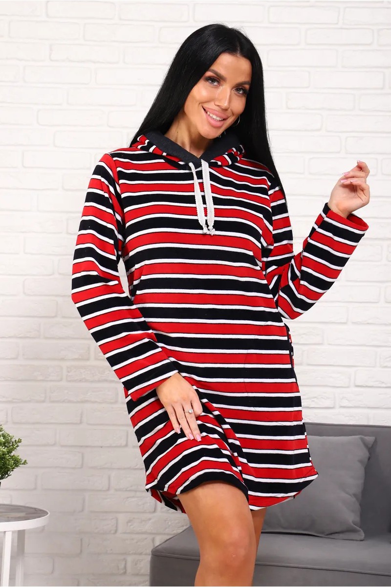 Представляем Вашему вниманию женское платье-тунику для дома, сшитое из тонкого, приятного телу флиса. Модель дополнена капюшоном. В этом платье Вам будет комфортно и уютно.