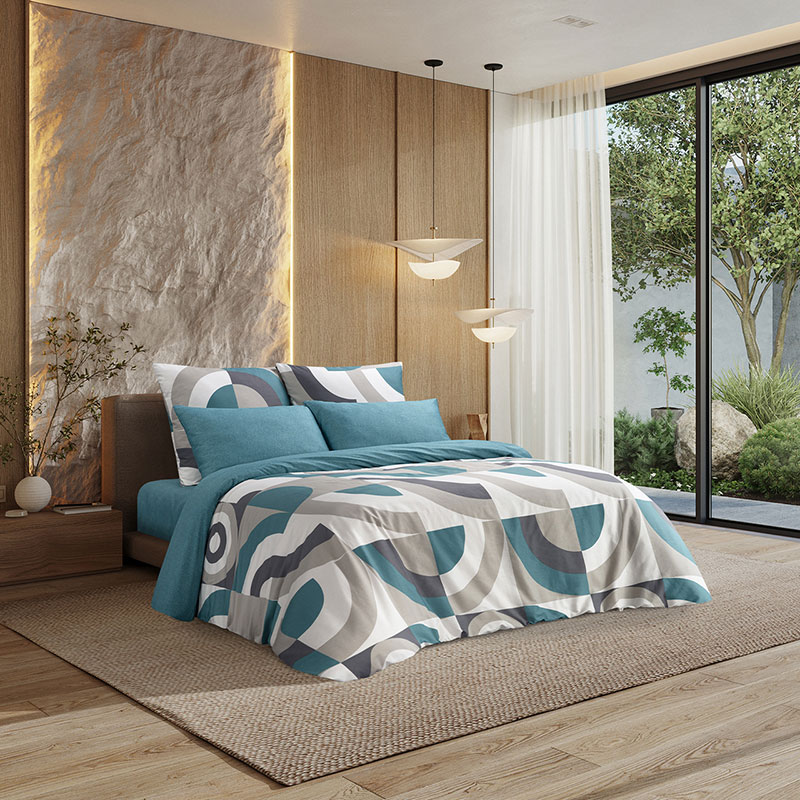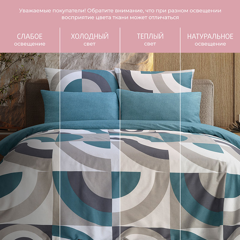 Особенности: простыня на резинке, наволочки с клапаном, пододеяльник с вшивной молнией