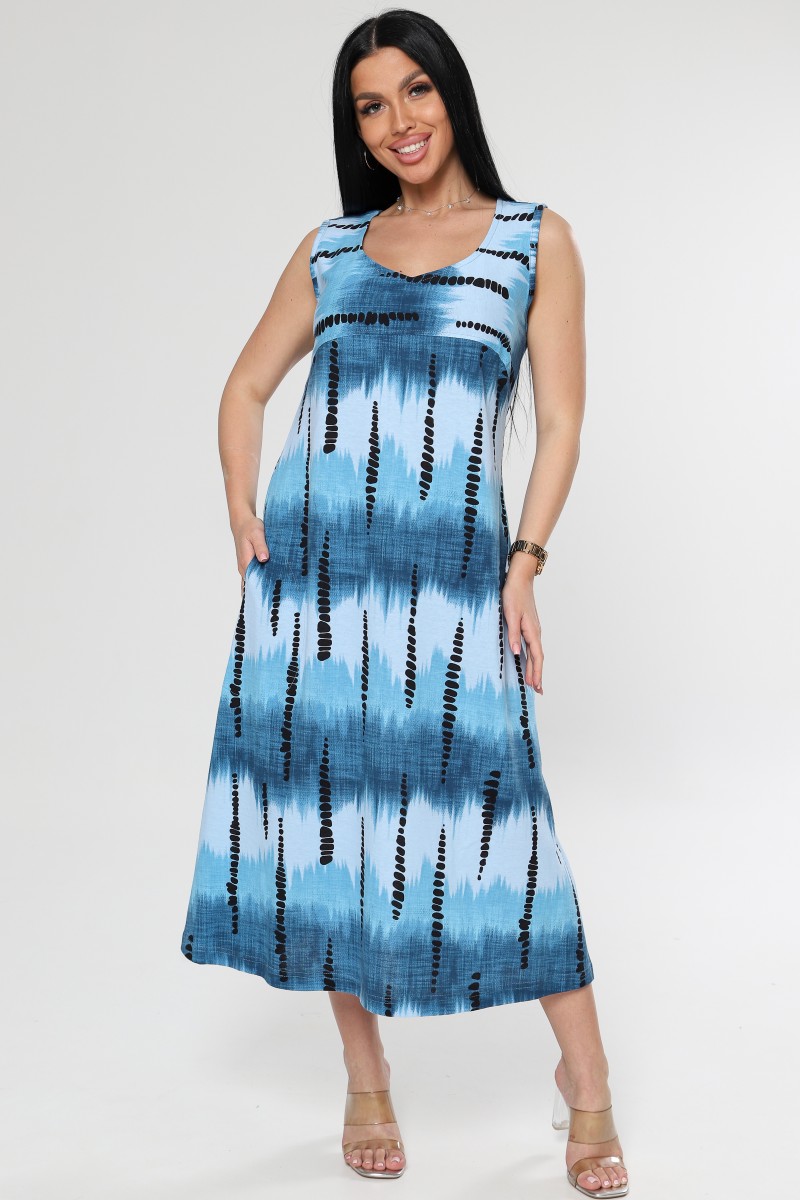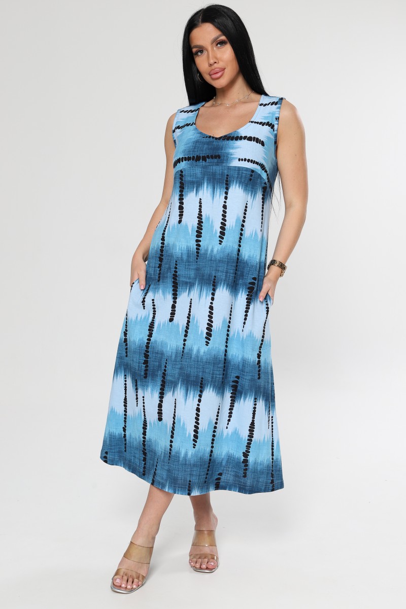 Платье женское "Мираж" ПлК-2916 кулирка (р-ры: 48-62) сев.сияние син.