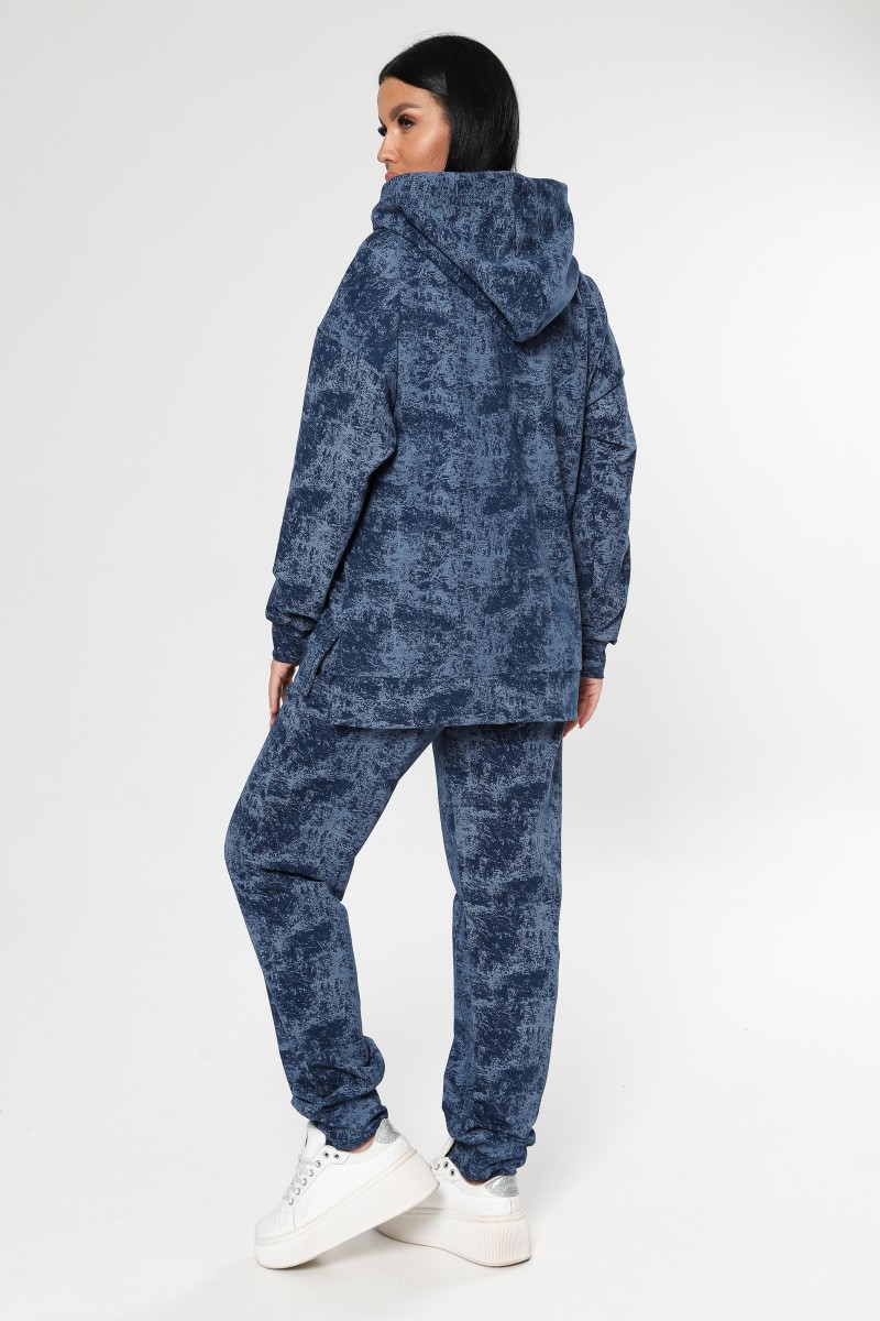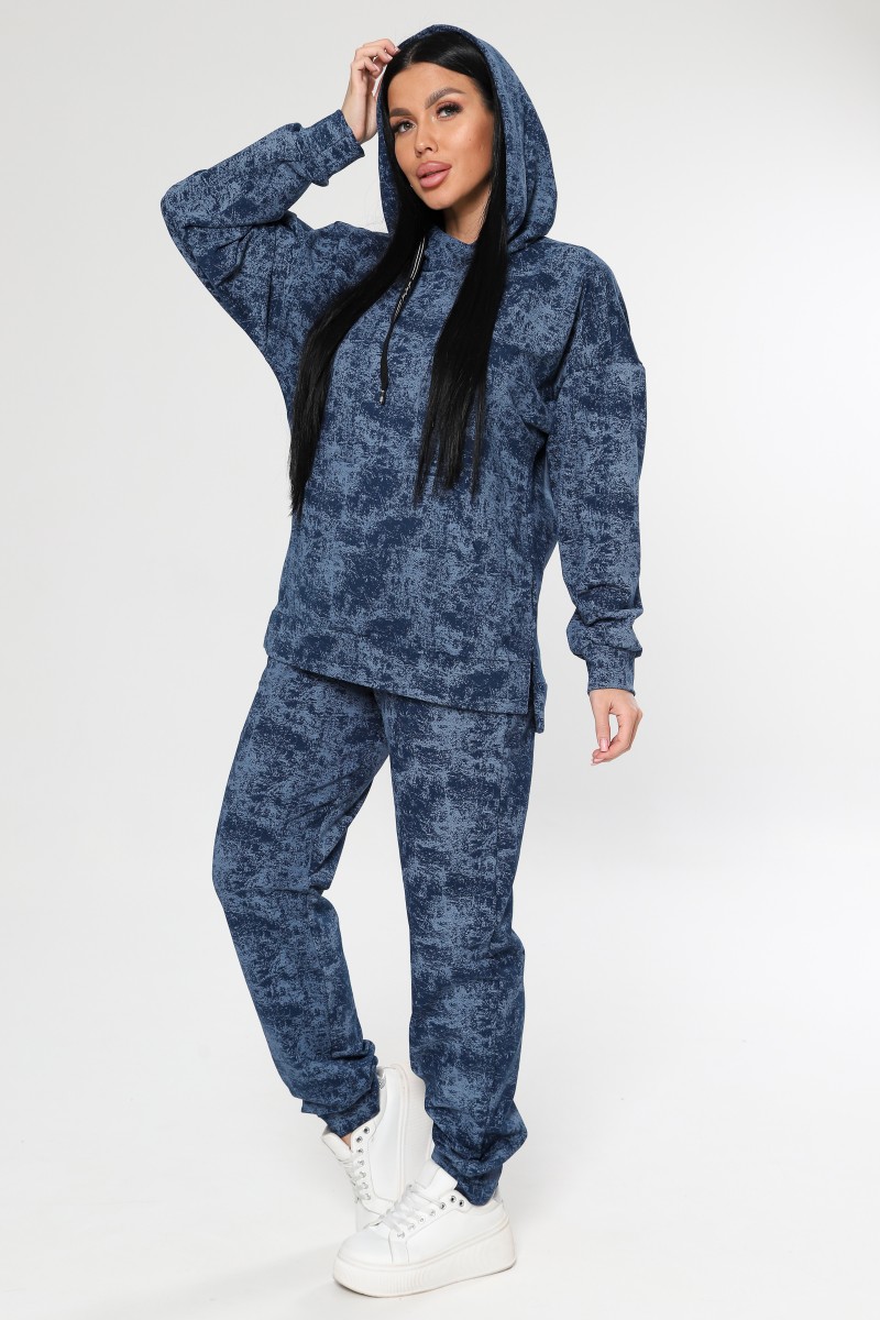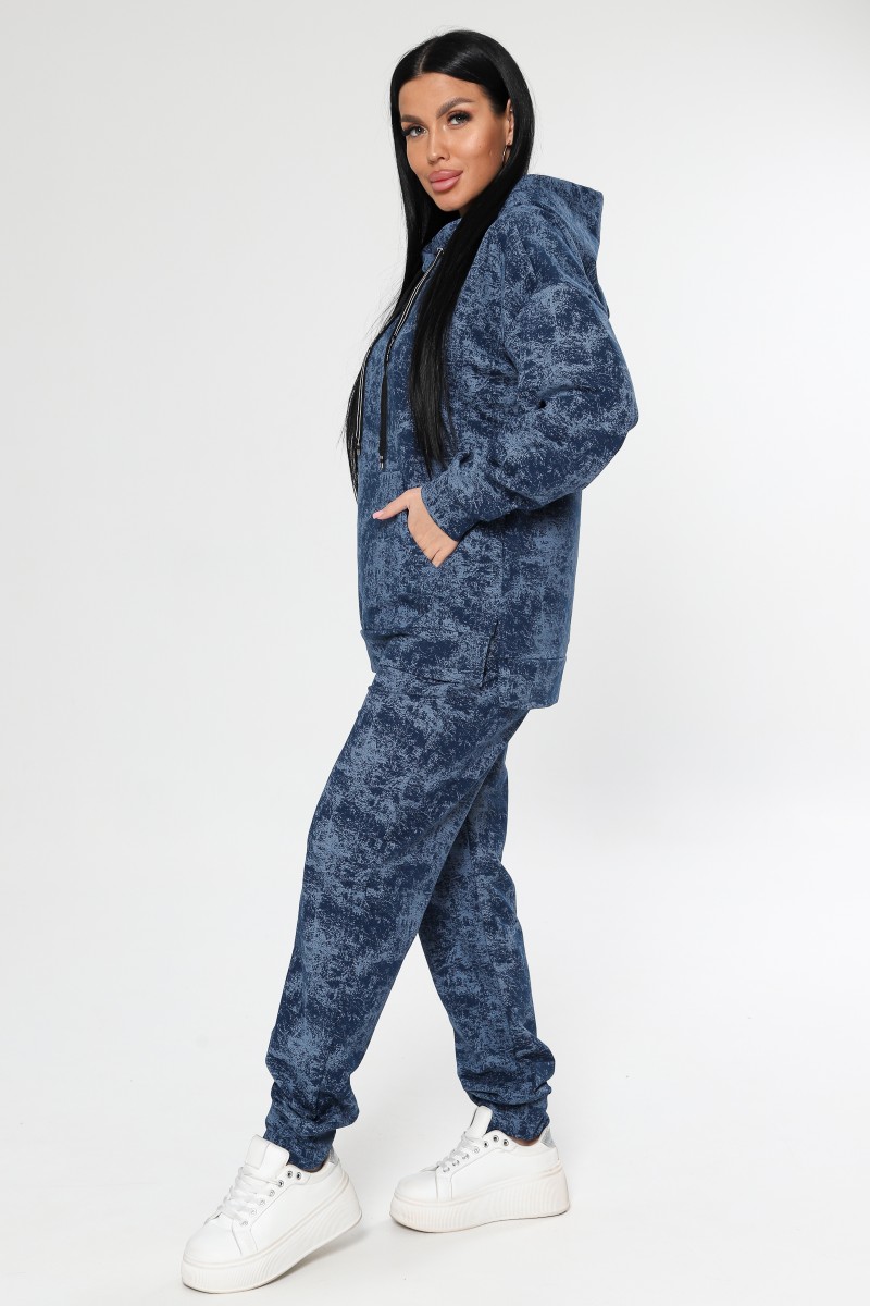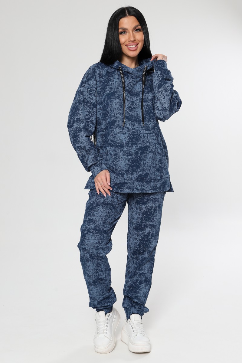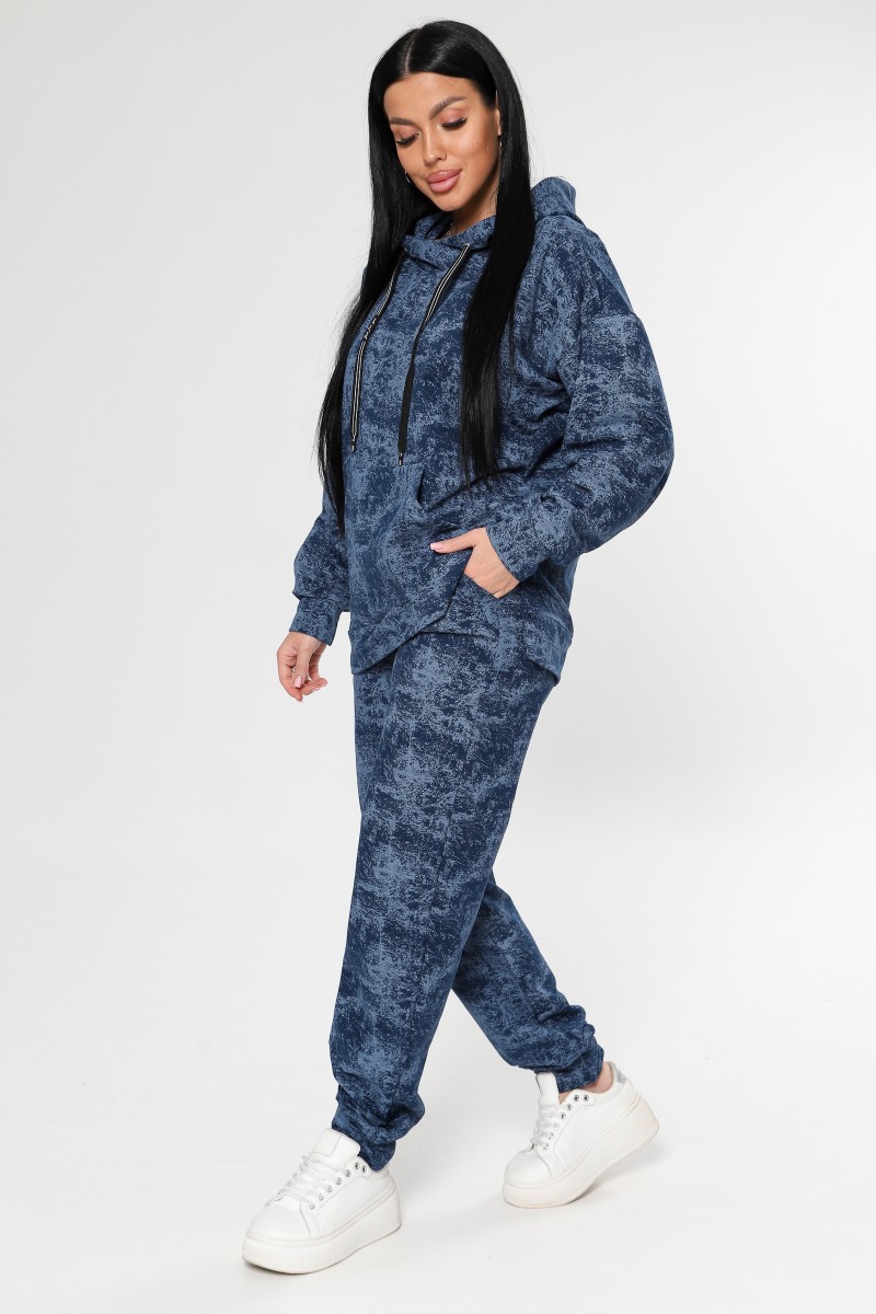 Представляем Вашему вниманию женский спортивный костюм - идеальный выбор для активных женщин, ценящих комфорт и стиль. Двойка, состоящая из худи с несъемным капюшоном и джоггеров, выполнена из мягкого футера без начеса, который приятен к телу и не сковывает движений. Модель с оригинальным вареным эффектом и стильным рисунком в цвете петрол или синий станет ярким акцентом в вашем образе. Свободный покрой и высокая посадка брюк обеспечивают максимальный комфорт в течение всего дня, а удобные карманы типа "кенгуру" и в шве позволят удобно хранить необходимые мелочи. Костюм подходит для повседневной носки, занятий спортом и активного отдыха. Благодаря универсальному дизайну и качественным материалам, этот костюм станет незаменимым элементом вашего гардероба.