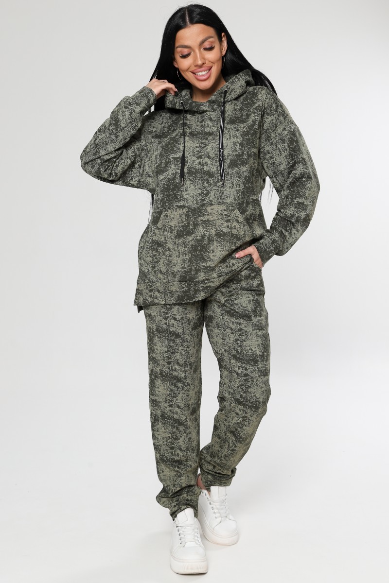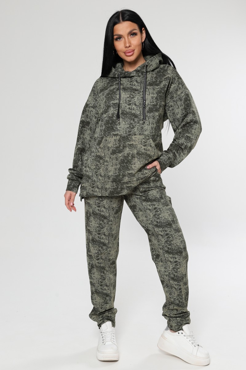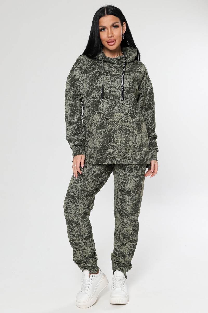 Костюм двойка женский "Варёнка" КФ-2749 футер с лайкрой (р-ры: 46-58) хаки