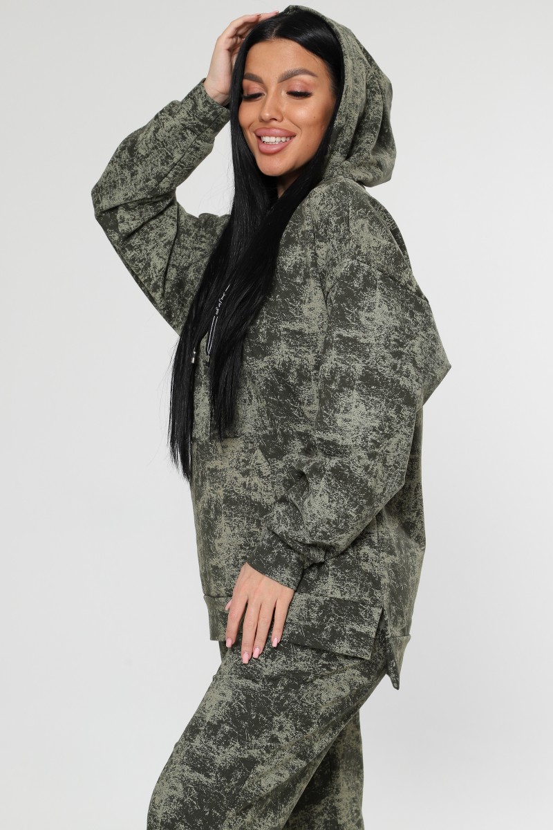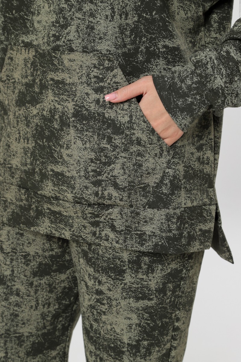 Представляем Вашему вниманию женский спортивный костюм - идеальный выбор для активных женщин, ценящих комфорт и стиль. Двойка, состоящая из худи с несъемным капюшоном и джоггеров, выполнена из мягкого футера без начеса, который приятен к телу и не сковывает движений. Модель с оригинальным вареным эффектом и стильным рисунком в цвете петрол или синий станет ярким акцентом в вашем образе. Свободный покрой и высокая посадка брюк обеспечивают максимальный комфорт в течение всего дня, а удобные карманы типа "кенгуру" и в шве позволят удобно хранить необходимые мелочи. Костюм подходит для повседневной носки, занятий спортом и активного отдыха. Благодаря универсальному дизайну и качественным материалам, этот костюм станет незаменимым элементом вашего гардероба.