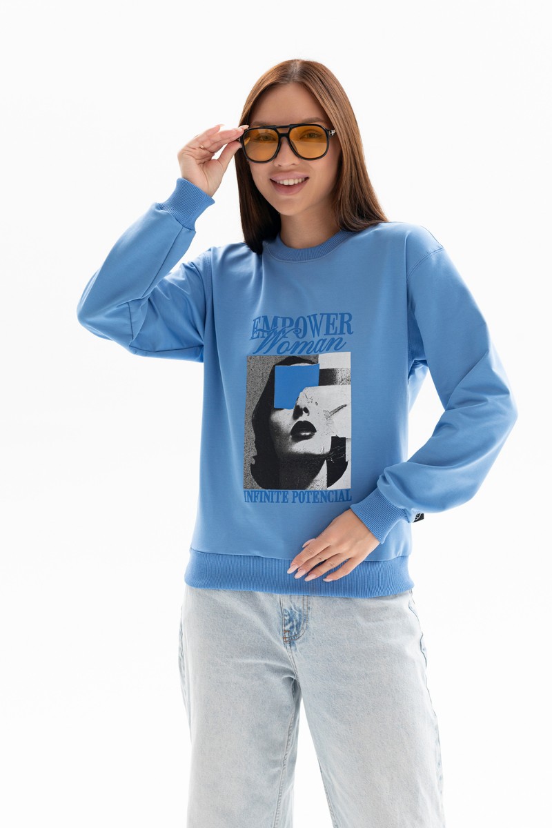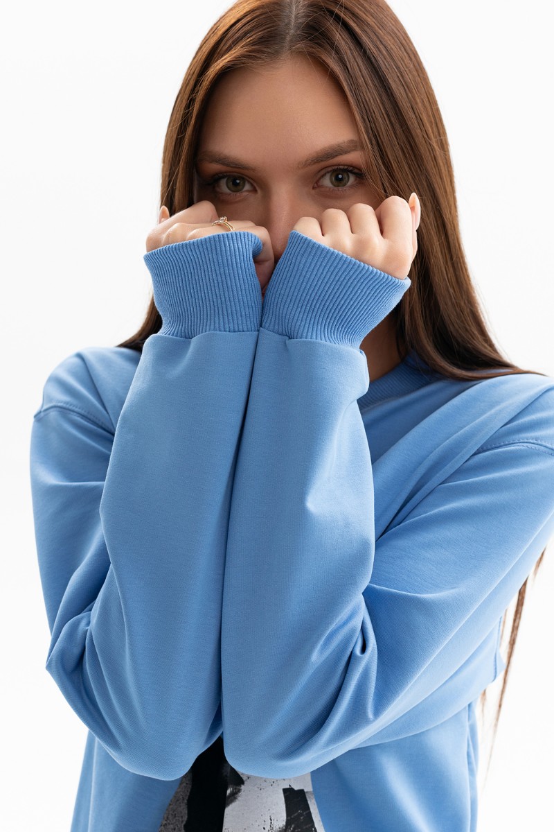 Толстовка женская №00028 футер 2-х нитка (р-ры: 40-58) сине-голубой
