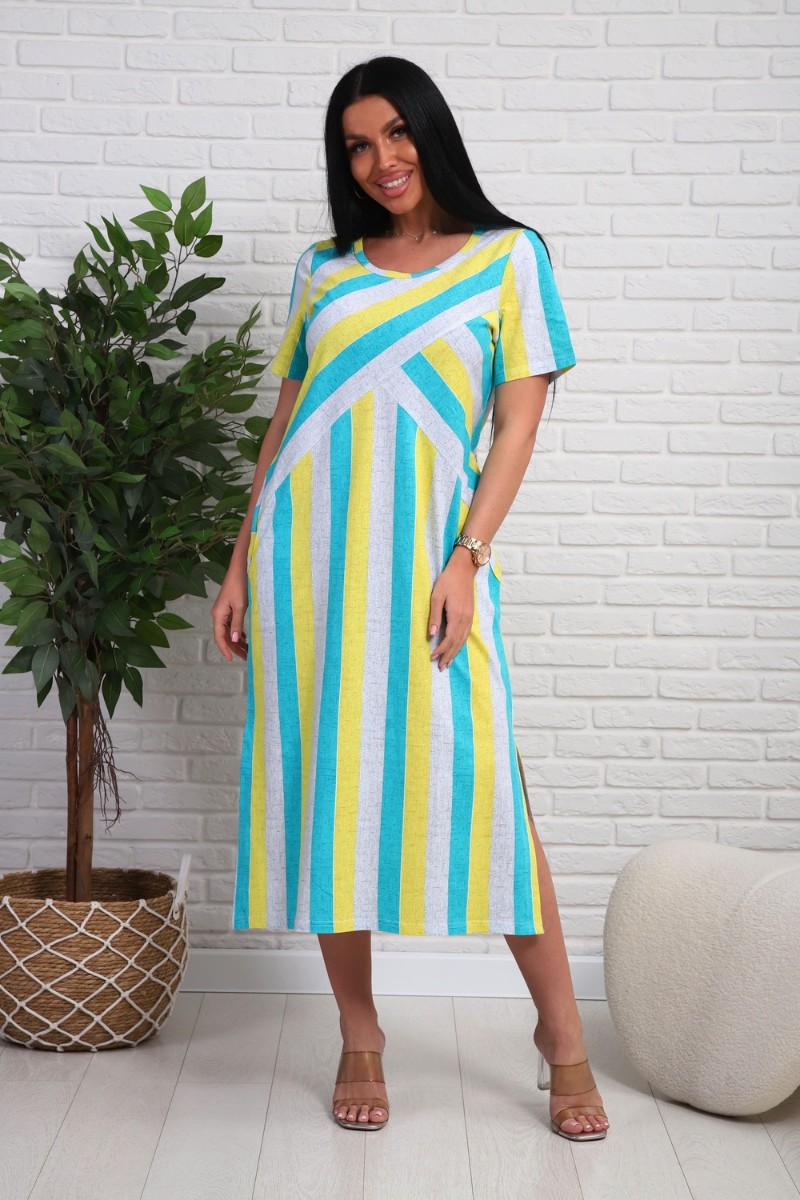 Платье женское №348т кулирка (р-ры: 48-58) желтый-бирюзовый