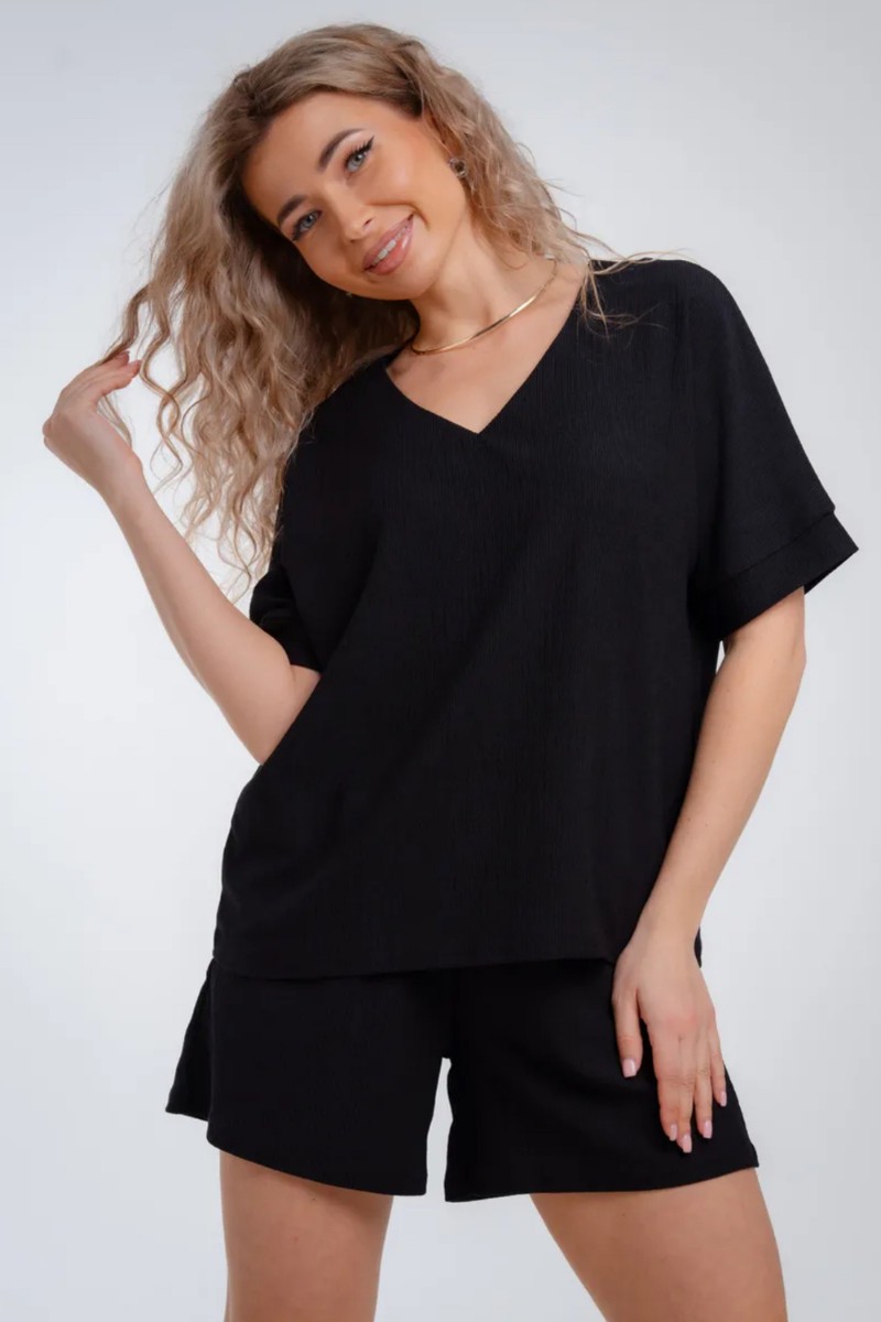 Доступный в широком диапазоне цветов и размеров, включая большие размеры, наш женский костюм с шортами станет идеальным решением для создания вашего уникального летнего образа.