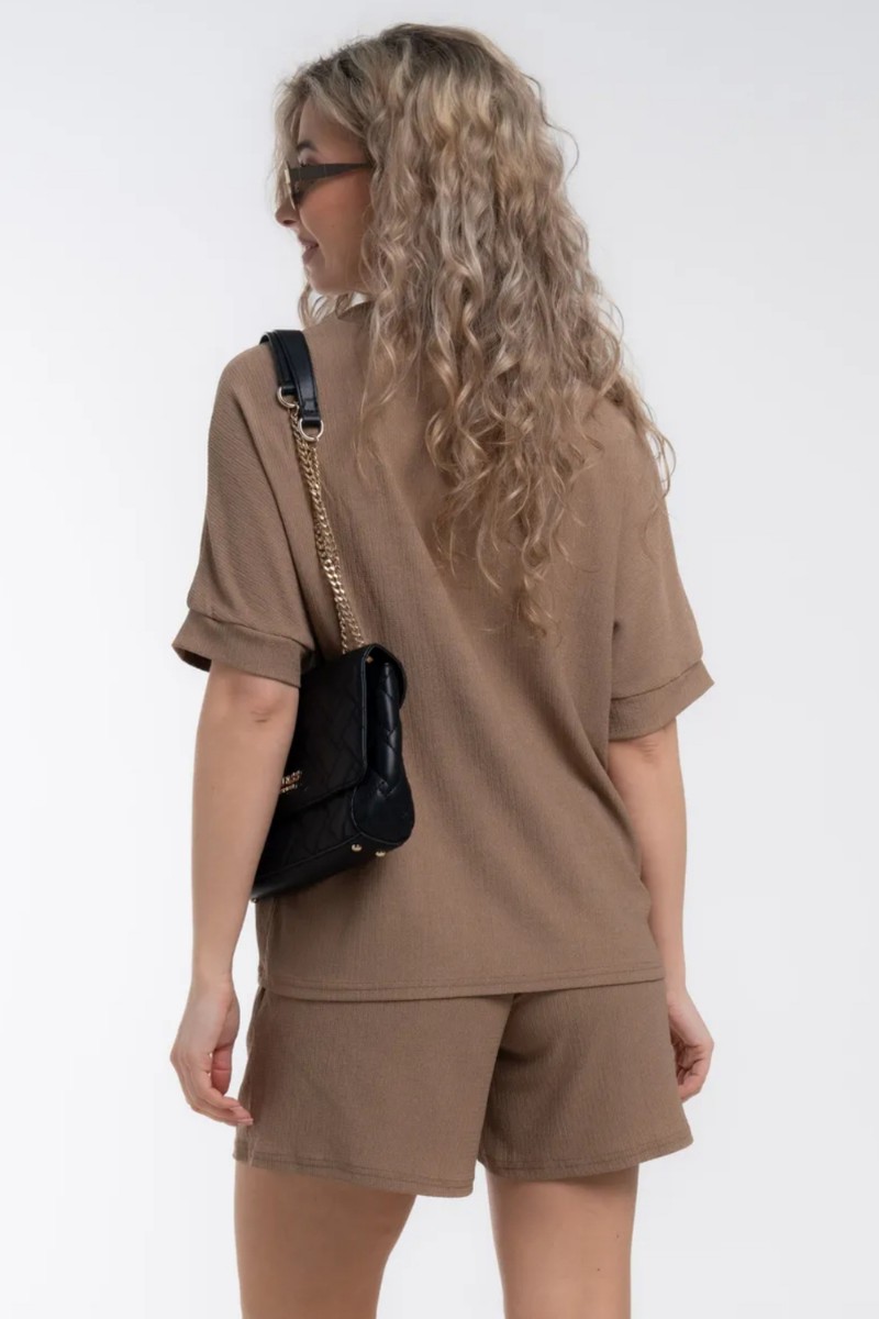 4. Свободные шорты и просторная футболка с коротким рукавом создают непринужденный образ, который легко адаптировать под любой стиль. Замените футболку на блузку, чтобы получить более элегантный вид, или дополните образ спортивной обувью для непринужденной прогулки.