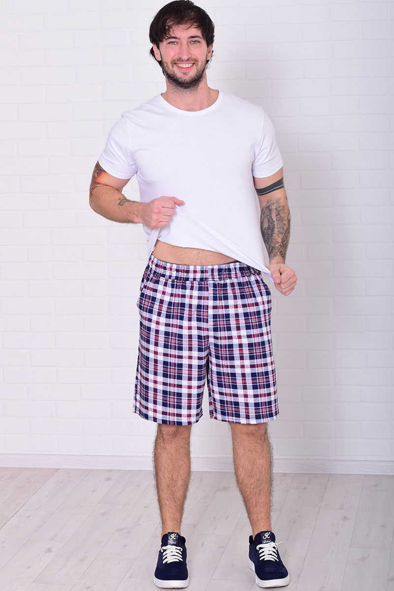 Шорты мужские 9173д кулирка (р-ры: 46-60) голубая клетка
