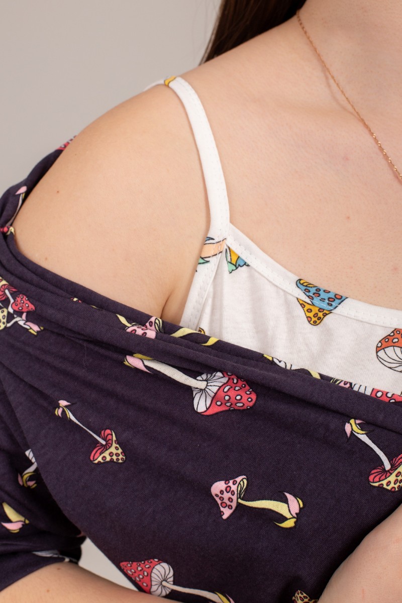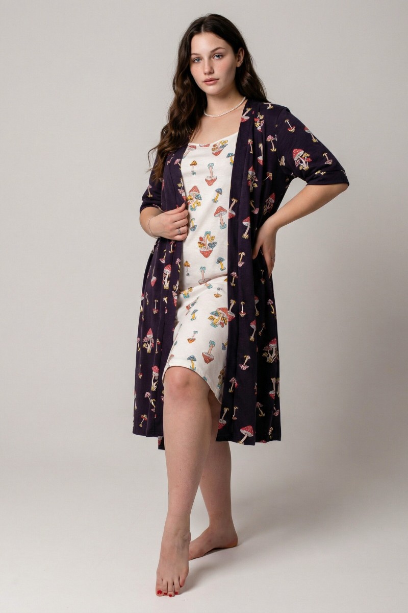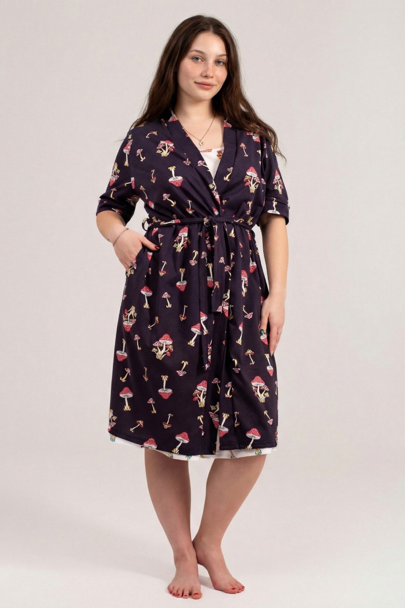 Пеньюар двойка женский КС-106 "Агата" кулирка (р-ры: 46-56) грибочки