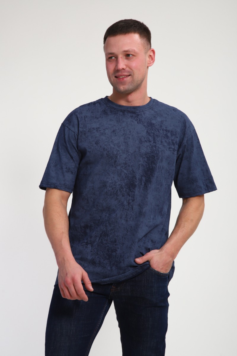 Футболка мужская М438 кулирка (р-ры: 46-60) синий винтаж