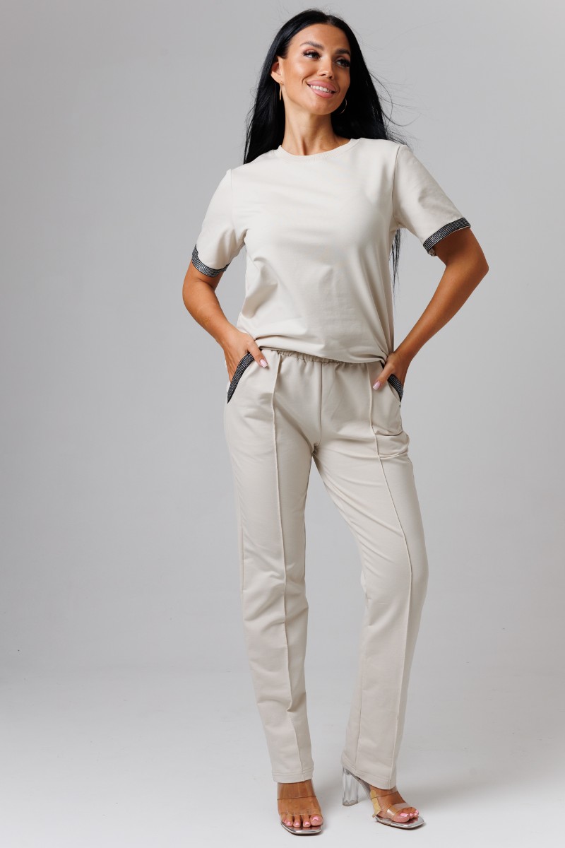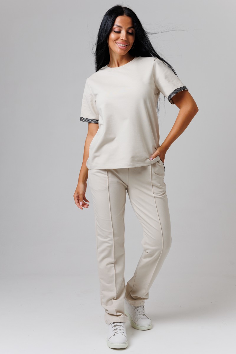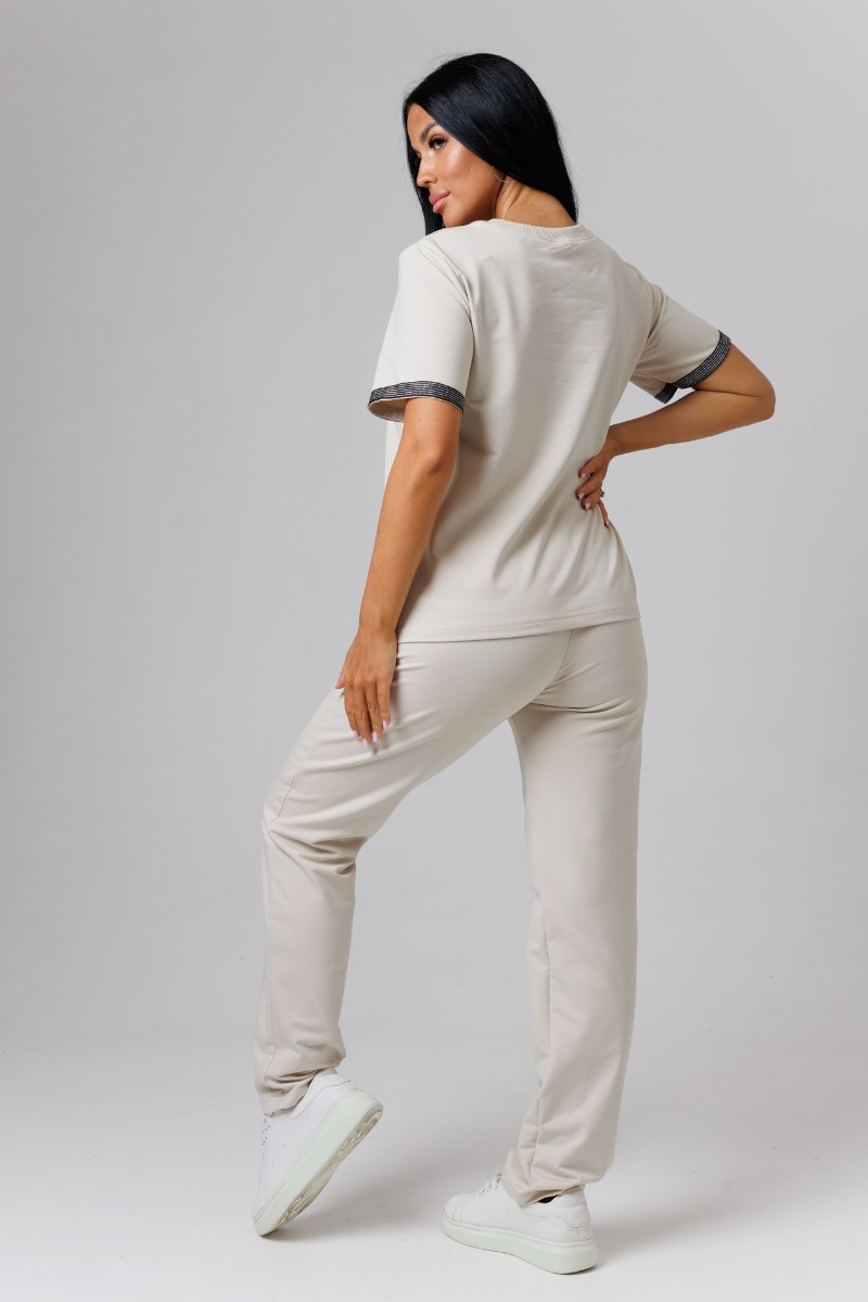 Представляем Вашему вниманию легкий женский костюм двойку из футера 2-х нитки. Комплект имеет интересную расцветку, которая красиво смотрится и поднимает настроение. Костюм хорошо сидит на фигуре и подчеркивает её достоинства. В нём Вы будете чувствовать себя комфортно и уверенно.