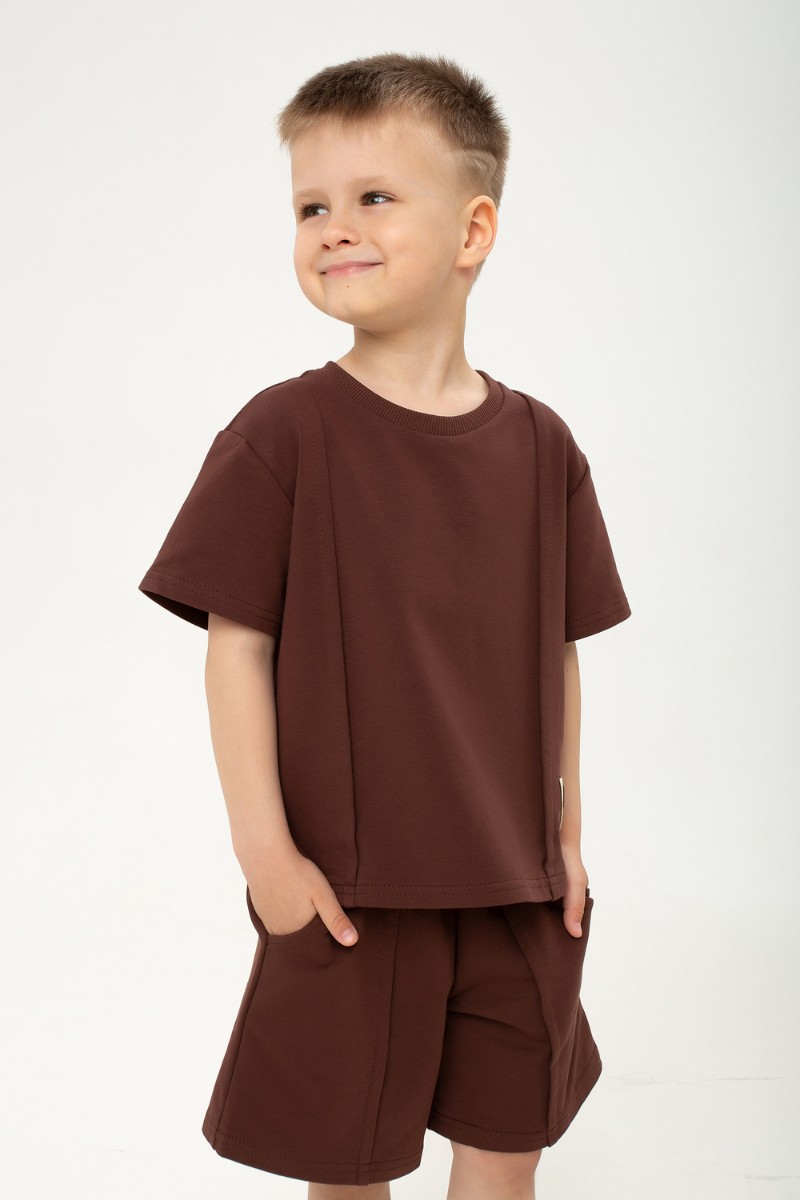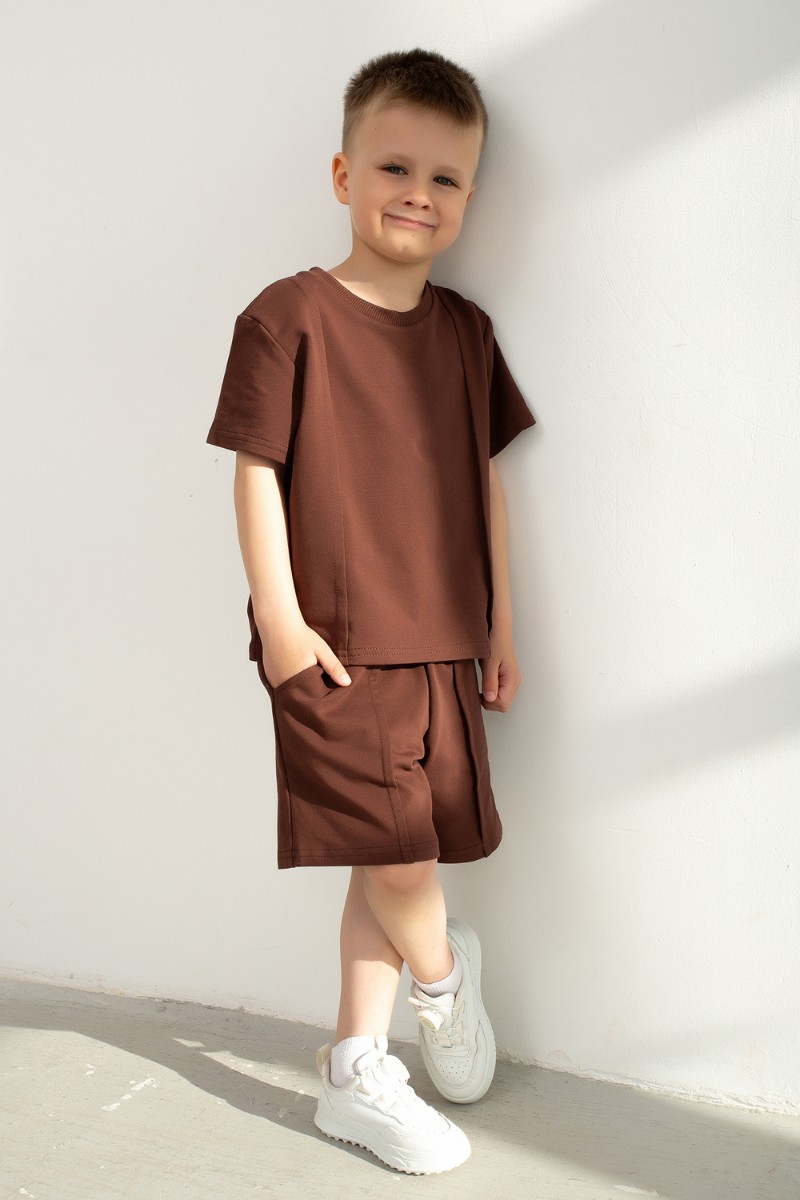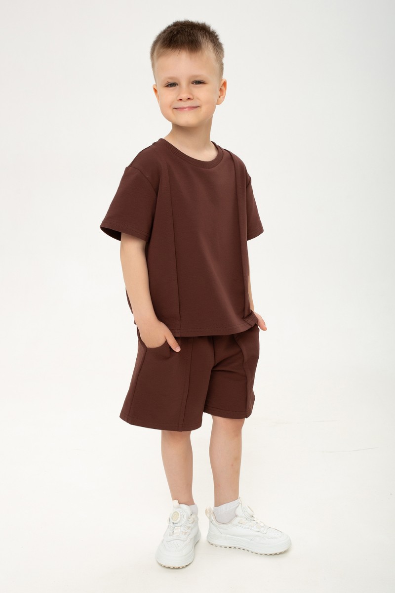 Представляем Вашему вниманию стильный детский костюм для мальчиков, который подарит малышу максимум удобства и удовольствия от каждого дня! Набор состоит из уютной футболки и удобных шорт, выполненных из натурального петельчатого футера приятной фактуры. Главной особенностью комплекта является оригинальный декор: футболка и шорты украшены элегантными строчками-стрелками на передней части, подчёркивая спортивный характер образа и придавая комплекту свежий, динамичный вид. Футболка оснащена короткими рукавами и свободно сидит на теле, позволяя ребенку активно двигаться и играть без ограничений. А шорты с мягким поясом на резинке обеспечивают идеальный комфорт и дополнительную свободу действий, а вместительные боковые карманы удобно разместят мелкие игрушки и необходимые мелочи. Благодаря сдержанной и универсальной расцветке костюм подойдет как мальчикам, так и девочкам, становясь незаменимым элементом гардероба на прогулках, отдыхе, занятиях спортом и домашней обстановке. Приобретите этот универсальный и модный детский костюм — пусть ваш малыш чувствует себя уверенно и счастливо каждый день!