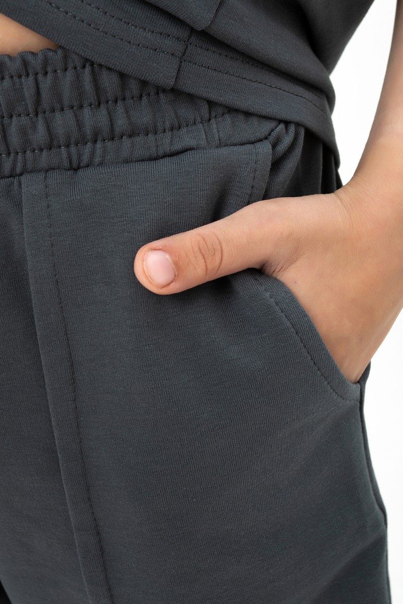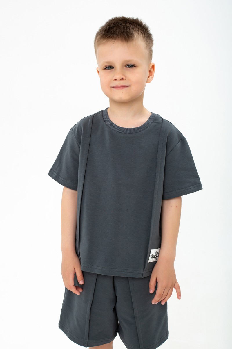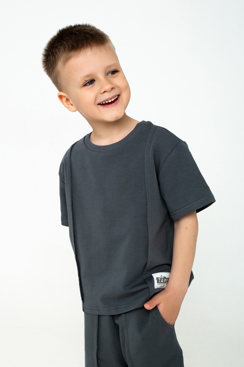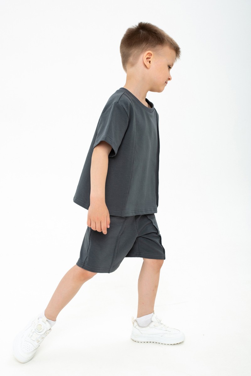 Представляем Вашему вниманию стильный детский костюм для мальчиков, который подарит малышу максимум удобства и удовольствия от каждого дня! Набор состоит из уютной футболки и удобных шорт, выполненных из натурального петельчатого футера приятной фактуры. Главной особенностью комплекта является оригинальный декор: футболка и шорты украшены элегантными строчками-стрелками на передней части, подчёркивая спортивный характер образа и придавая комплекту свежий, динамичный вид. Футболка оснащена короткими рукавами и свободно сидит на теле, позволяя ребенку активно двигаться и играть без ограничений. А шорты с мягким поясом на резинке обеспечивают идеальный комфорт и дополнительную свободу действий, а вместительные боковые карманы удобно разместят мелкие игрушки и необходимые мелочи. Благодаря сдержанной и универсальной расцветке костюм подойдет как мальчикам, так и девочкам, становясь незаменимым элементом гардероба на прогулках, отдыхе, занятиях спортом и домашней обстановке. Приобретите этот универсальный и модный детский костюм — пусть ваш малыш чувствует себя уверенно и счастливо каждый день!