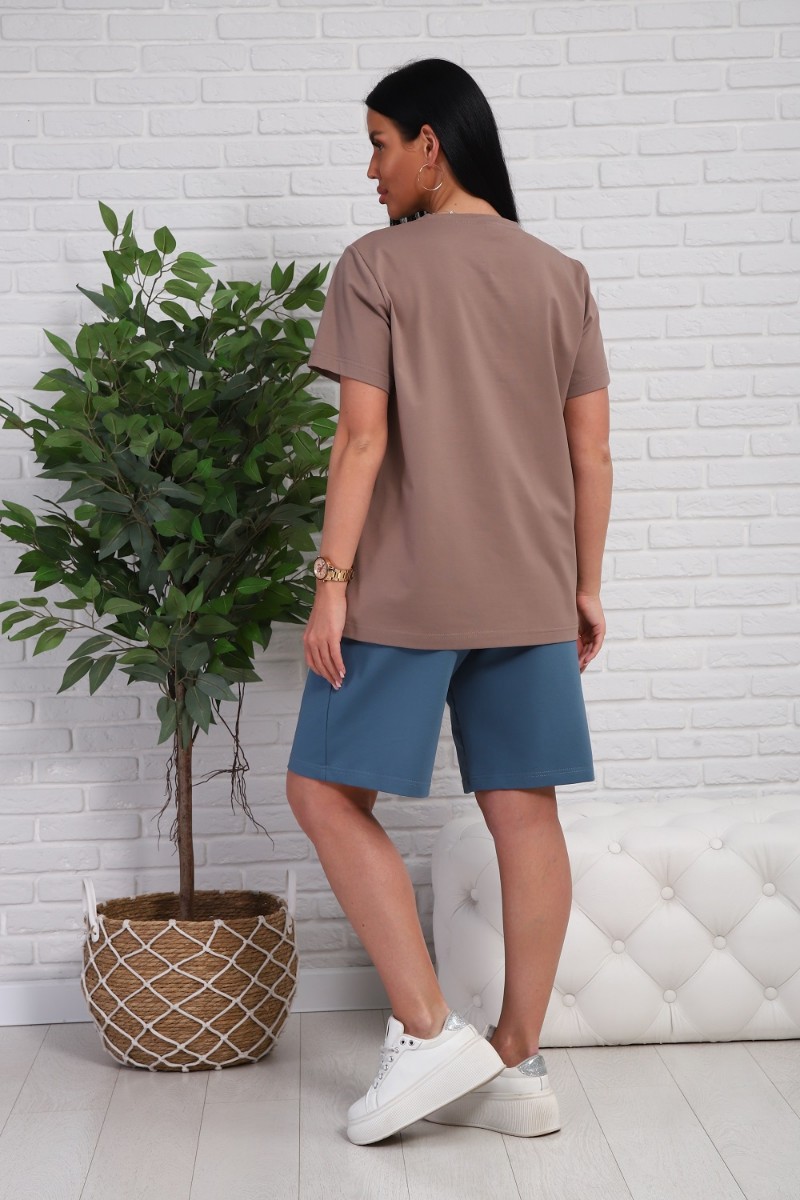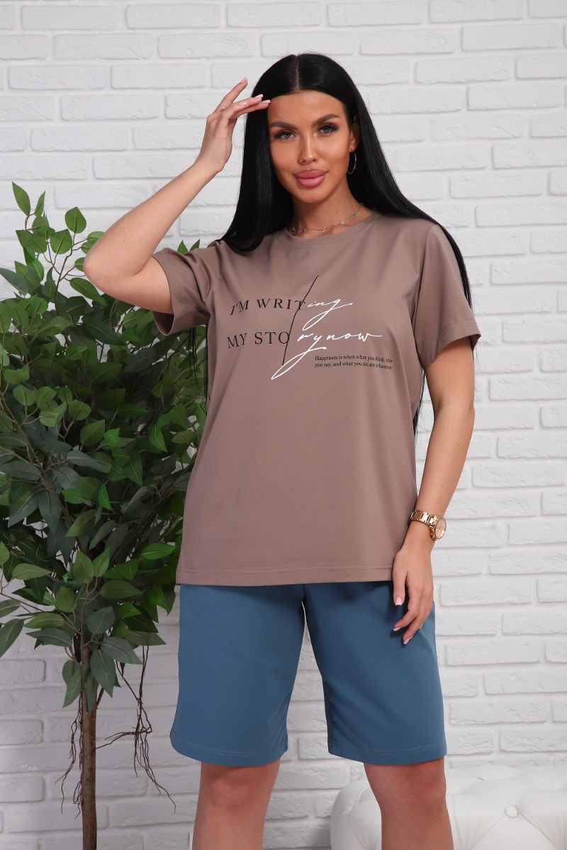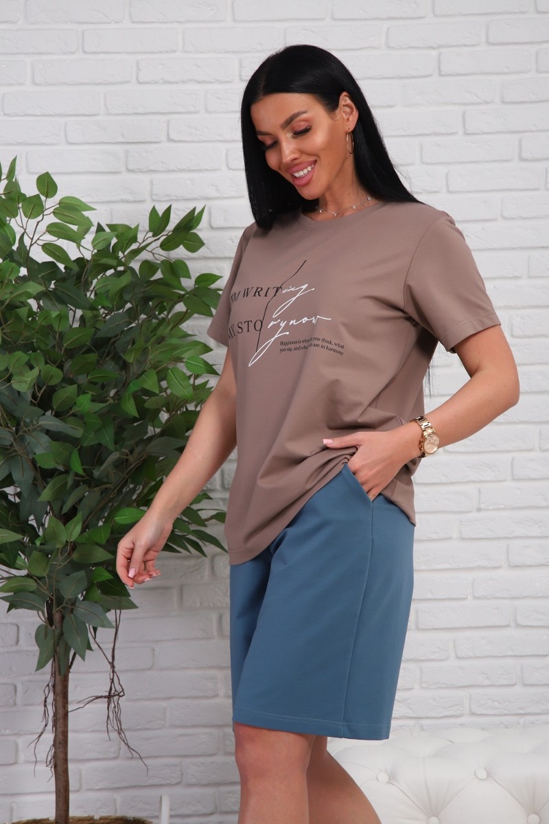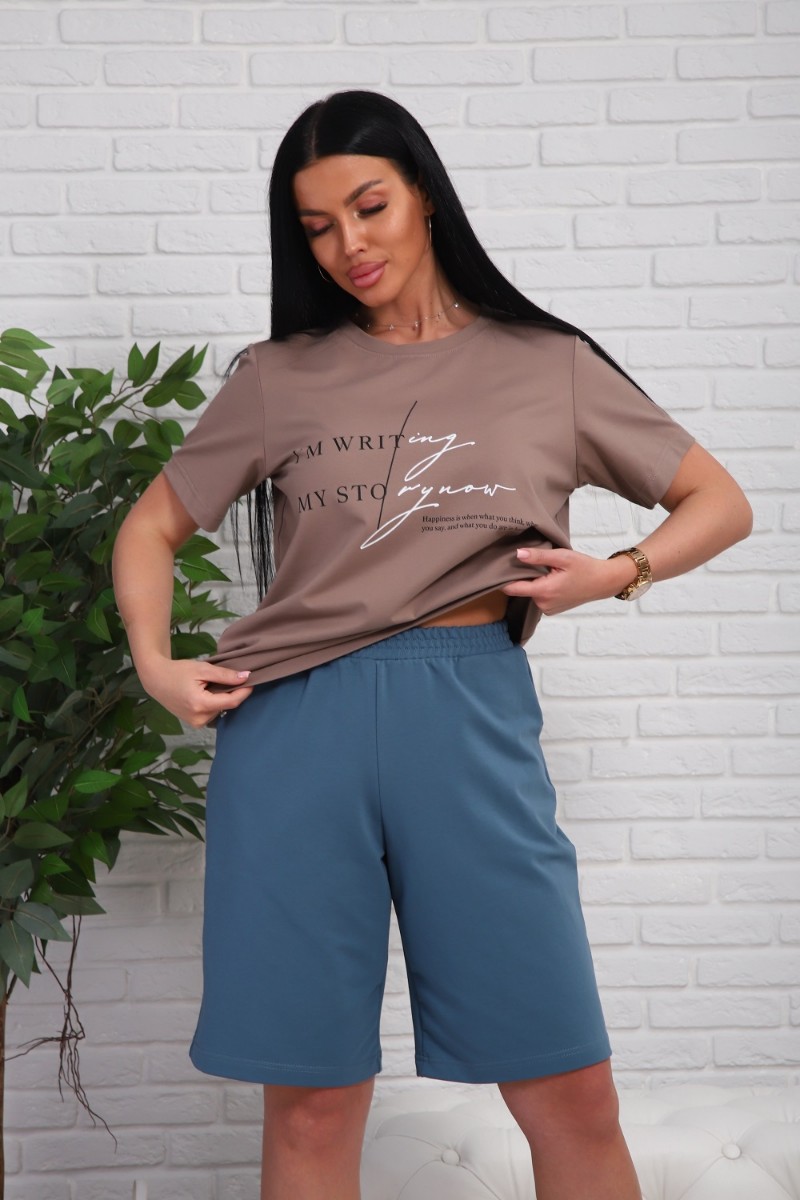 Представляем Вашему вниманию легкий женский костюм двойку, сшитый из натуральной, приятной телу кулирки - 100% хлопок, позволяющий коже дышать. Футболка с короткими рукавами и шорты с боковыми карманами. Комплект обеспечит полную свободу движений в повседневной носке. В нём Вы будете чувствовать себя комфортно и уверенно.