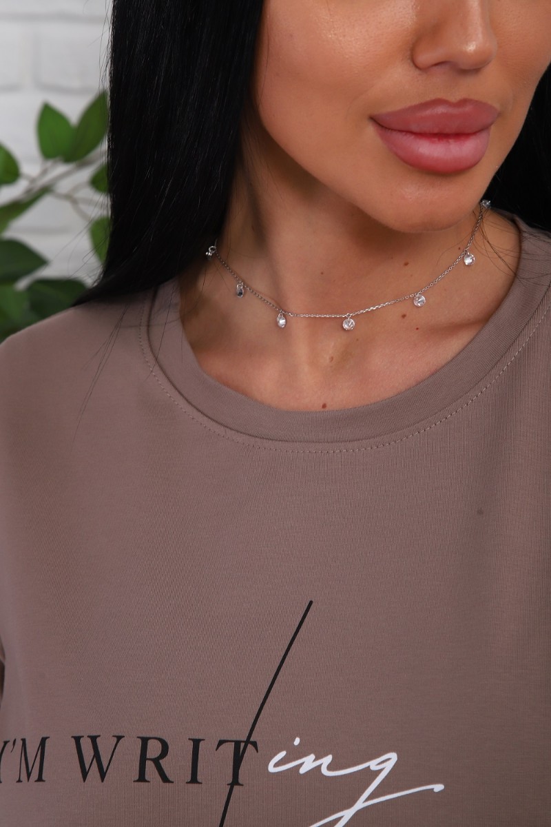 Костюм двойка женский №1107 кулирка-футер (р-ры: 48-54) коричневый