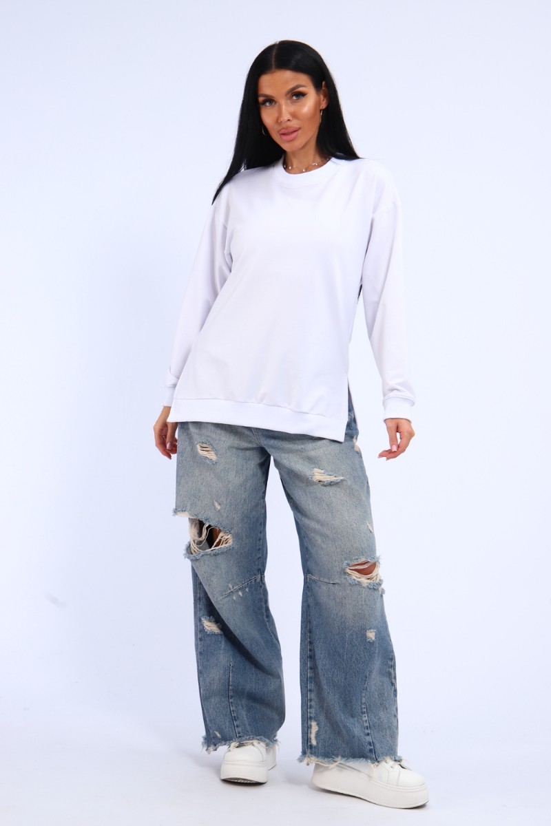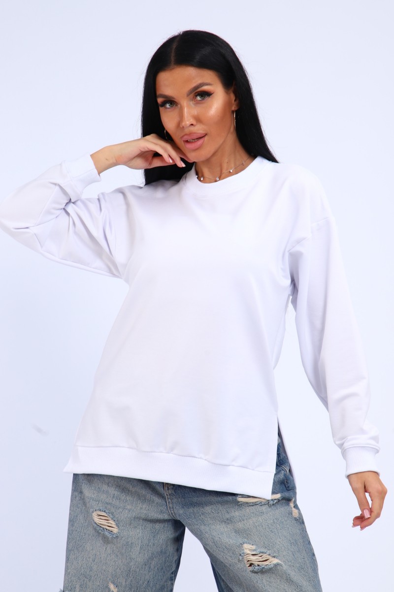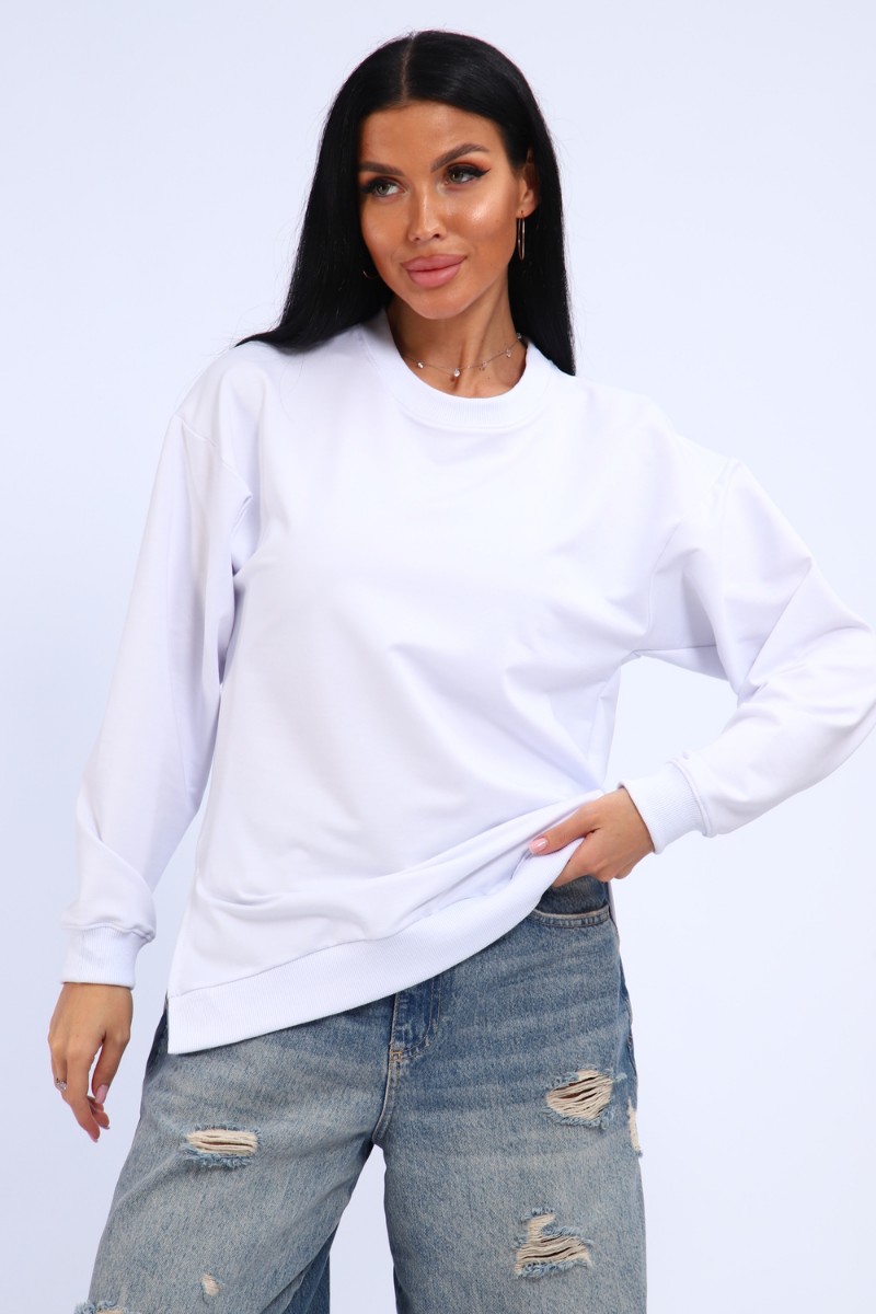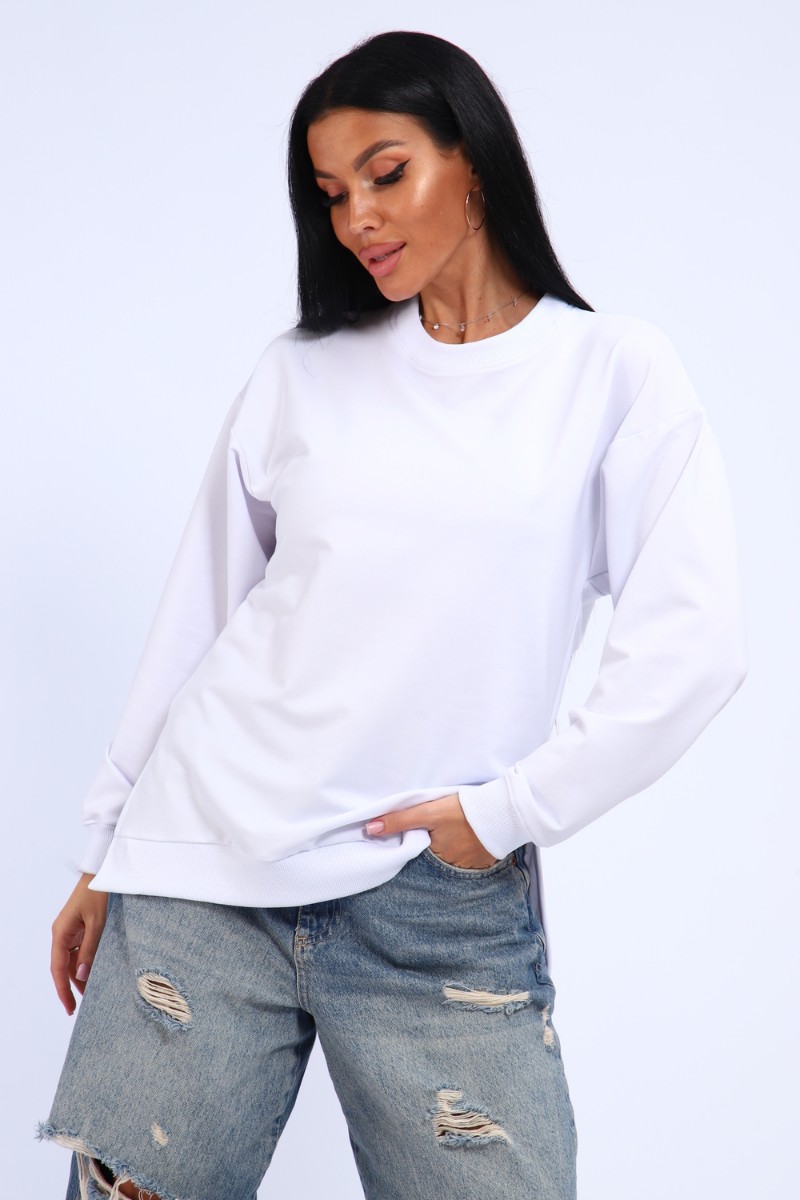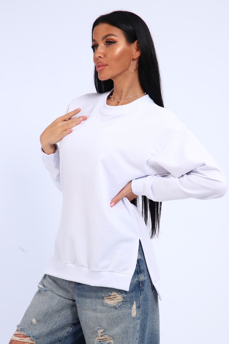 Представляем Вашему вниманию свитшот женский свободного кроя, в боковых швах разрезы. Спинка удлиненная. Однотонная модель хорошо сочетается с любой другой одеждой, обеспечивая максимум комфорта и полную свободу движений в повседневной носке.