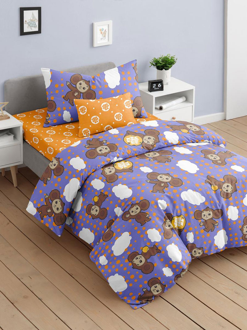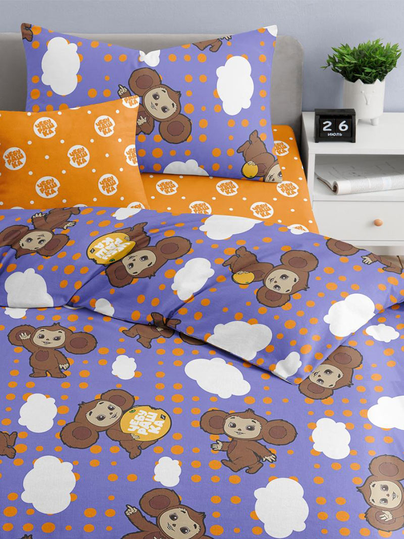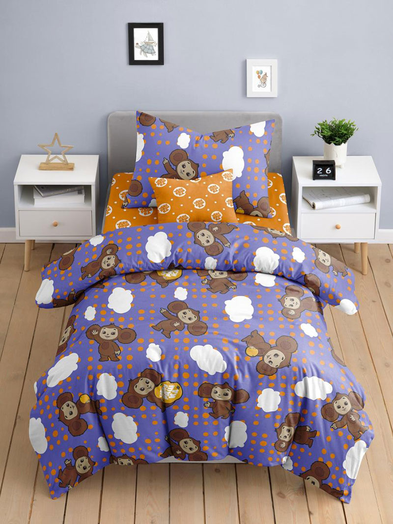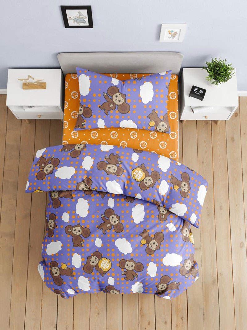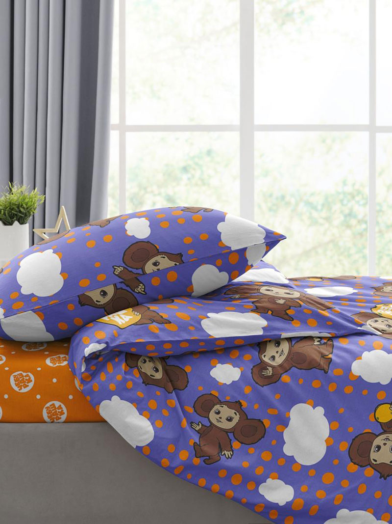 Детское постельное белье поплин "Чебурашка фиолетовая"