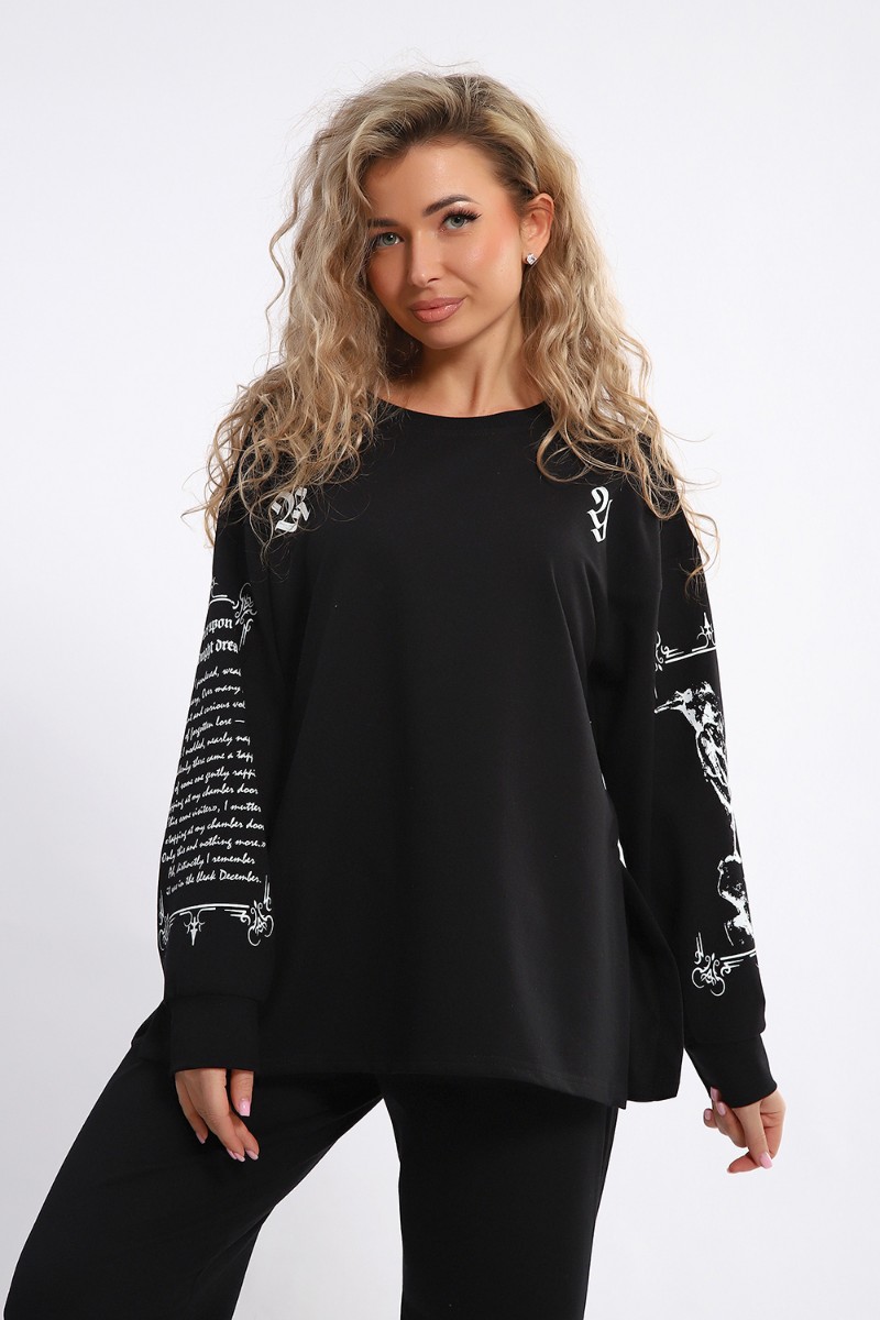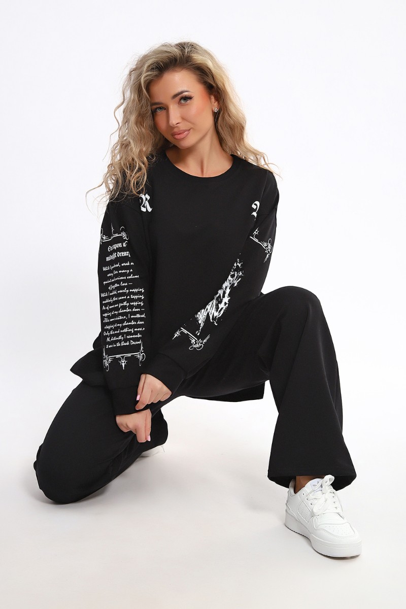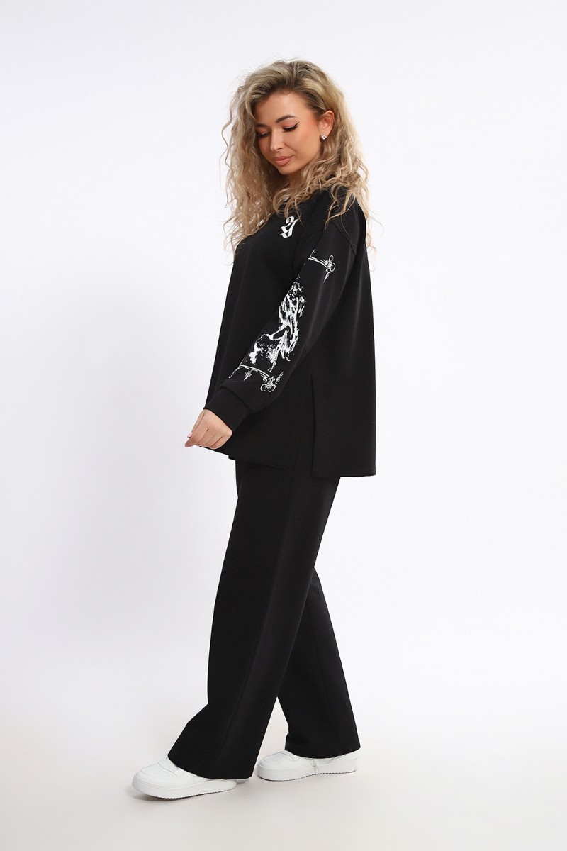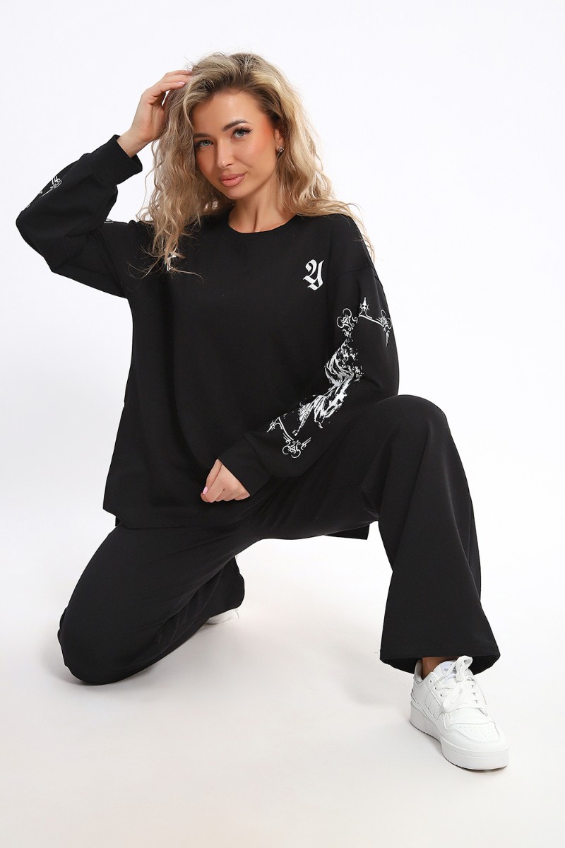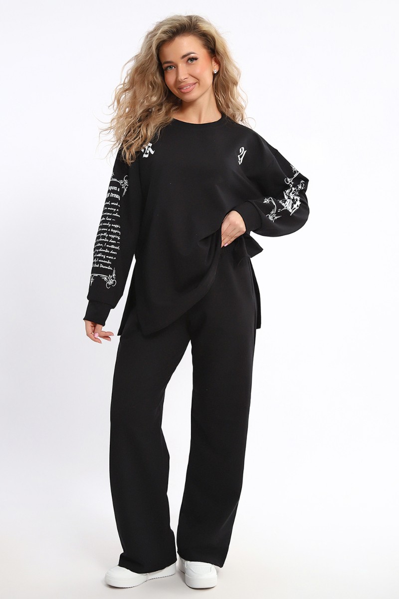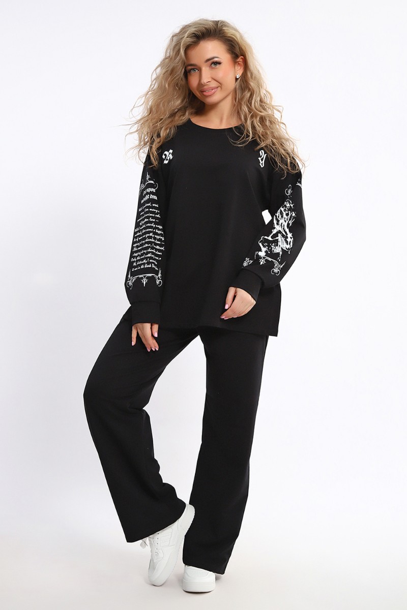 Костюм двойка женский №85035 футер 2-х нитка (р-ры: 46-56) черный