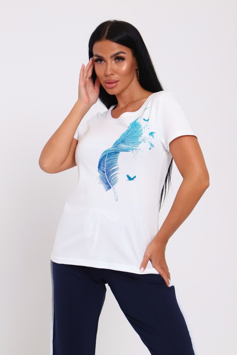 Костюм двойка женский №74715 кулирка-футер (р-ры: 42-60) синий