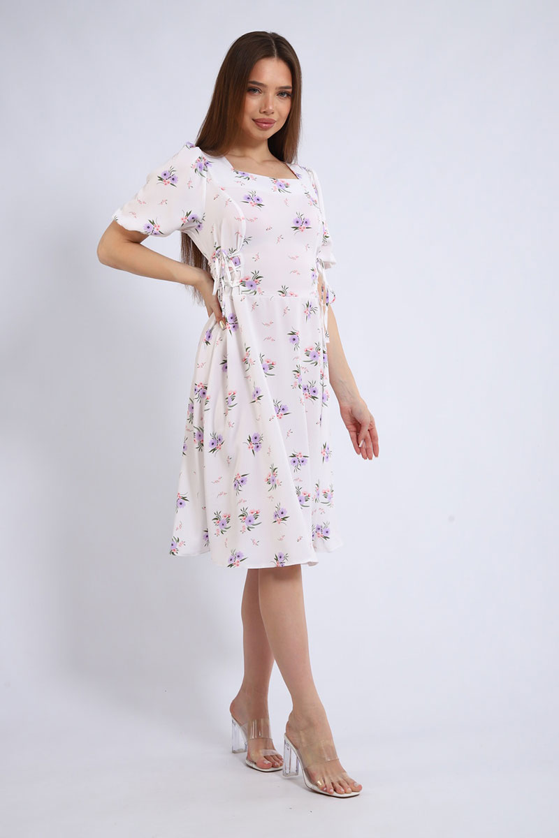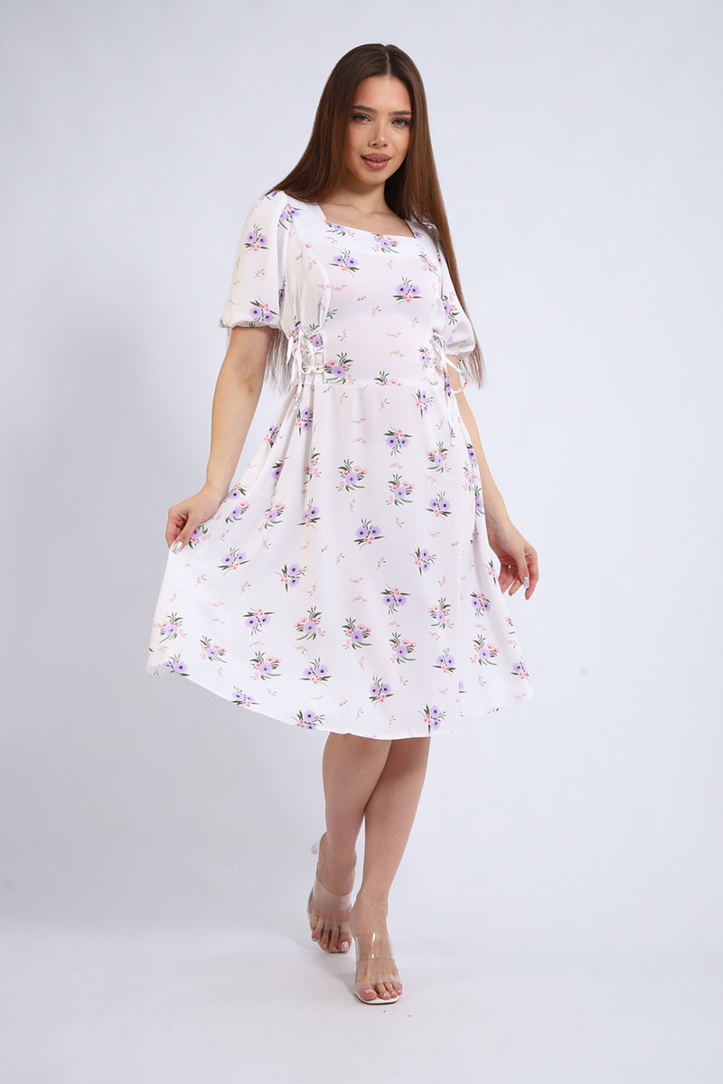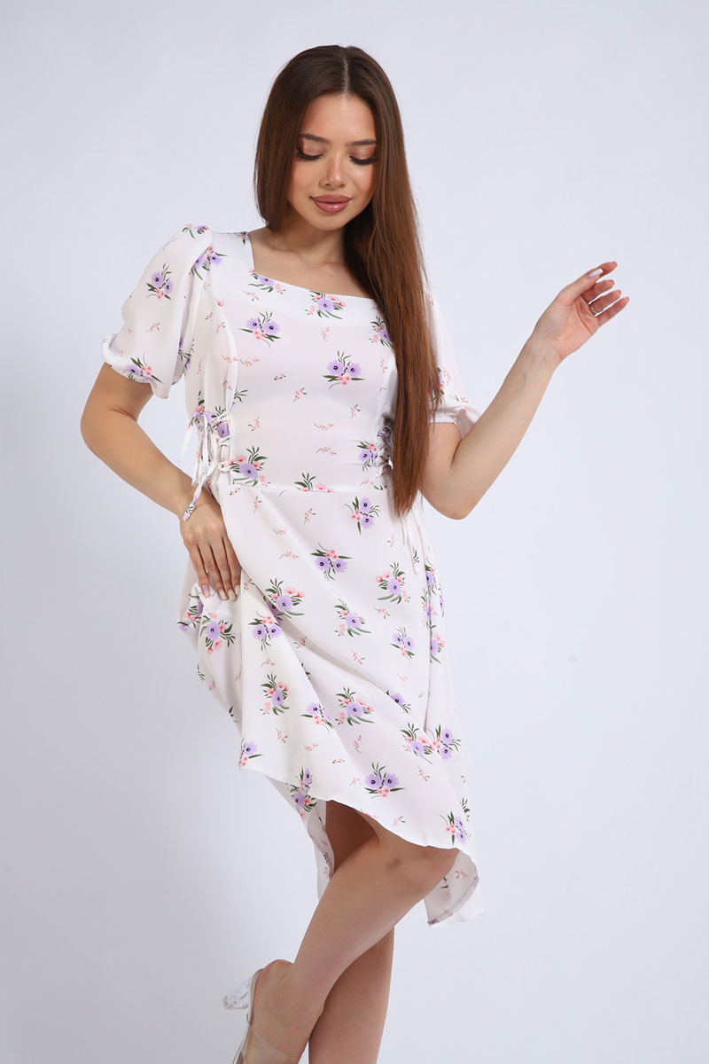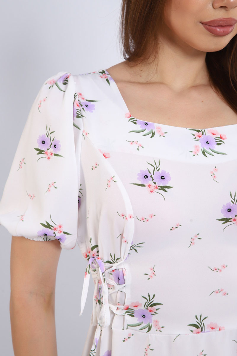 Платье создано из дышащей и невесомой ткани суперсофт, которая обеспечивает максимальный комфорт. Фигурный вырез горловины подчеркивает женственность и добавляет образу изюминку. Короткий рукав идеально подходит для летней жары. Боковые затяжки с корсетом помогают регулировать посадку и создавать силуэт своей мечты.
