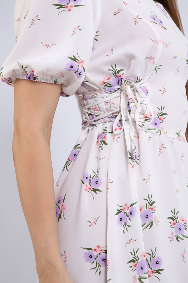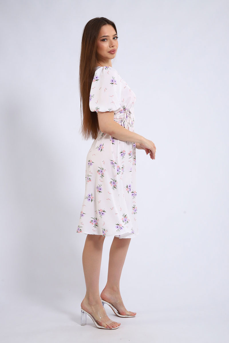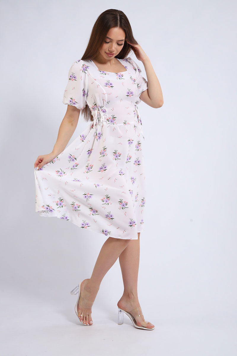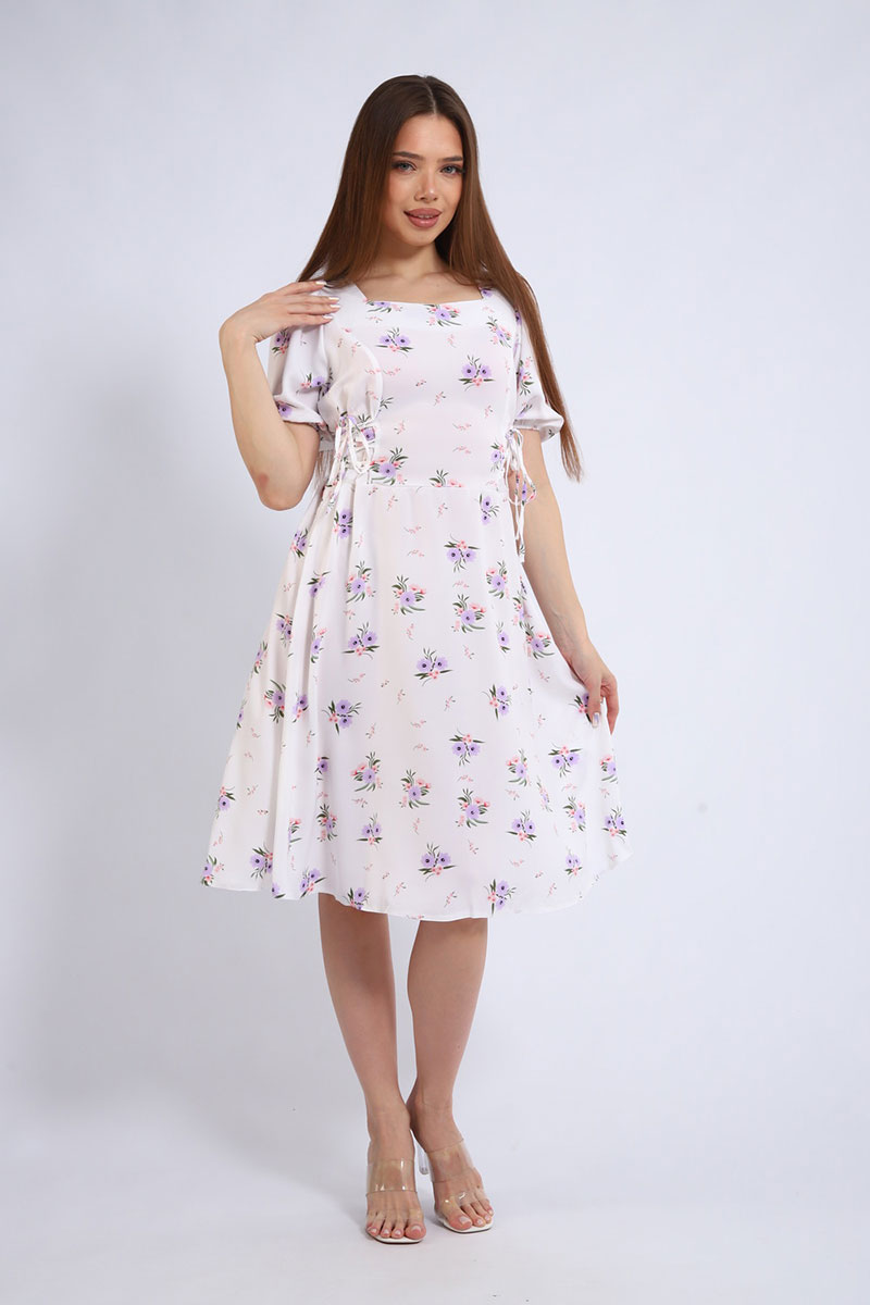 Платье создано из дышащей и невесомой ткани суперсофт, которая обеспечивает максимальный комфорт. Фигурный вырез горловины подчеркивает женственность и добавляет образу изюминку. Короткий рукав идеально подходит для летней жары. Боковые затяжки с корсетом помогают регулировать посадку и создавать силуэт своей мечты.
