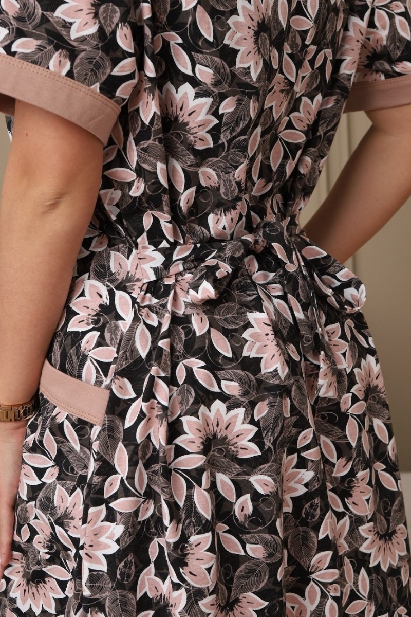Халат женский 008 кулирка (р-ры: 54-74) коричневый-цветы