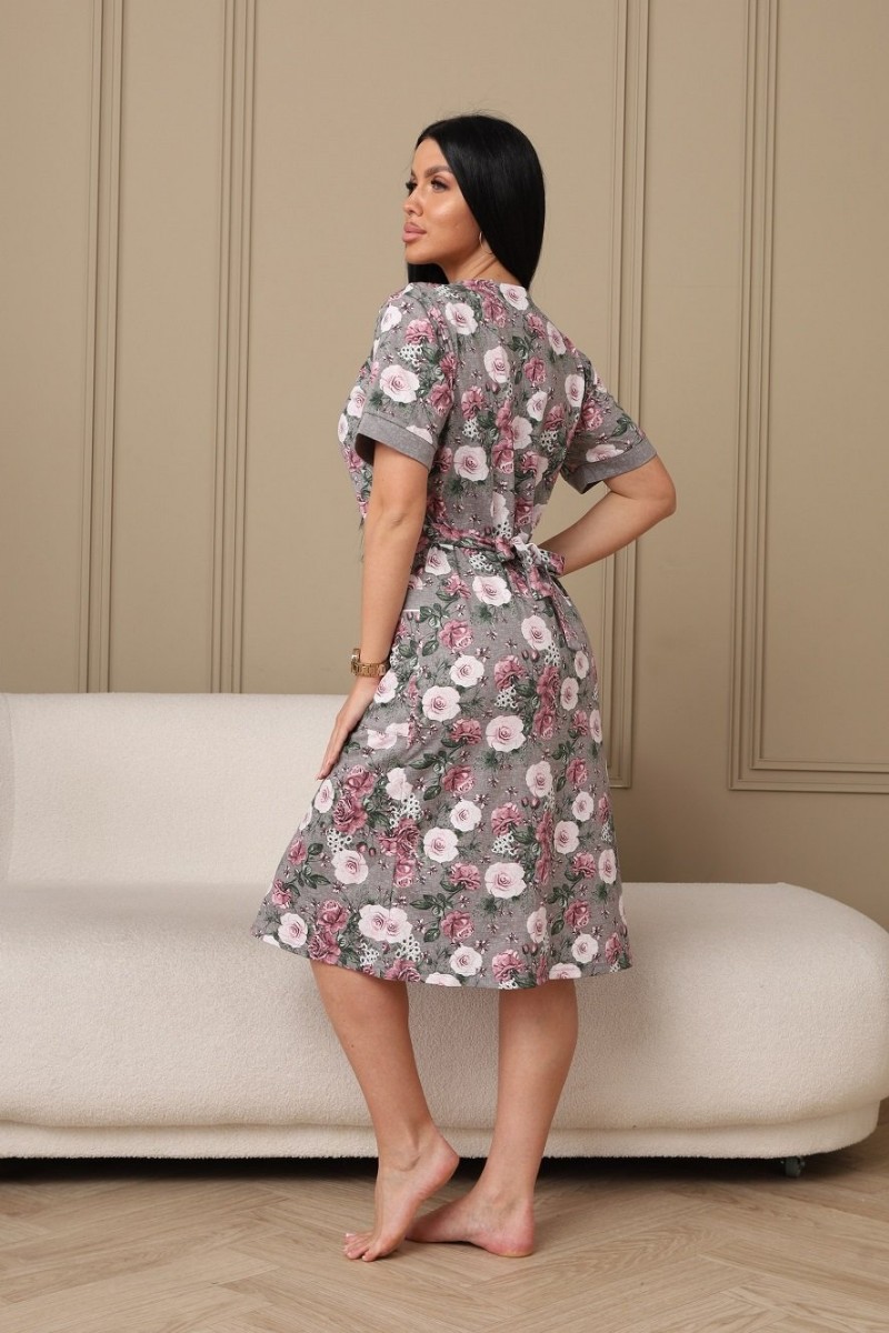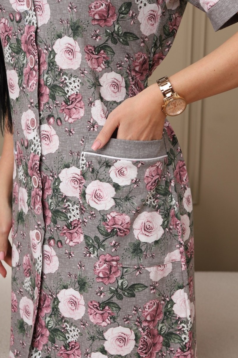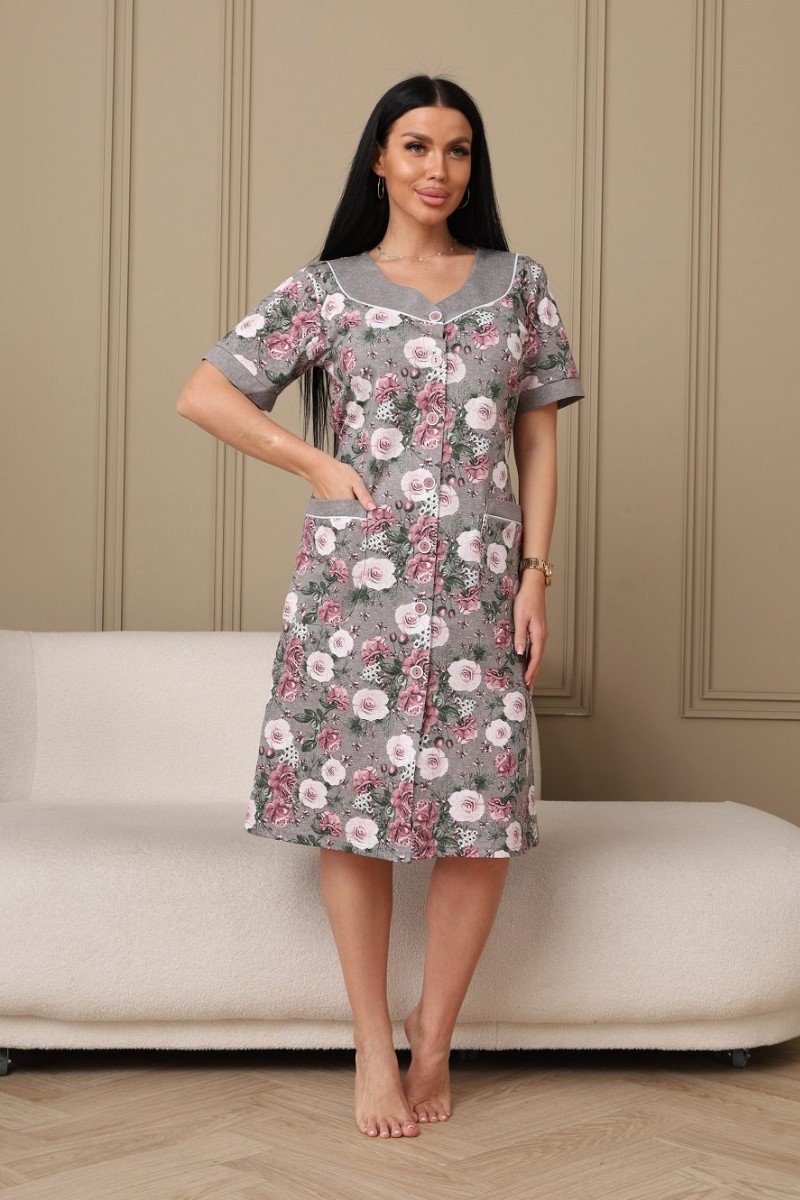 Халат женский 084 кулирка (р-ры: 48-62) серый-розы