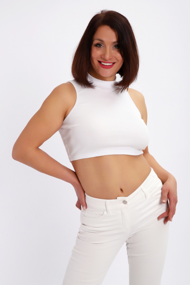 Представляем Вашему вниманию топ женский со стойкой. Данная модель выполнена из эластичного трикотажного полотна кашкорсе (хлопок 98%, лайкра 2%). пройма обработана окантовкой из основной ткани. Очень приятная ткань, износостойкая. Отлично подходит как для повседневной носки, так и для спорта.