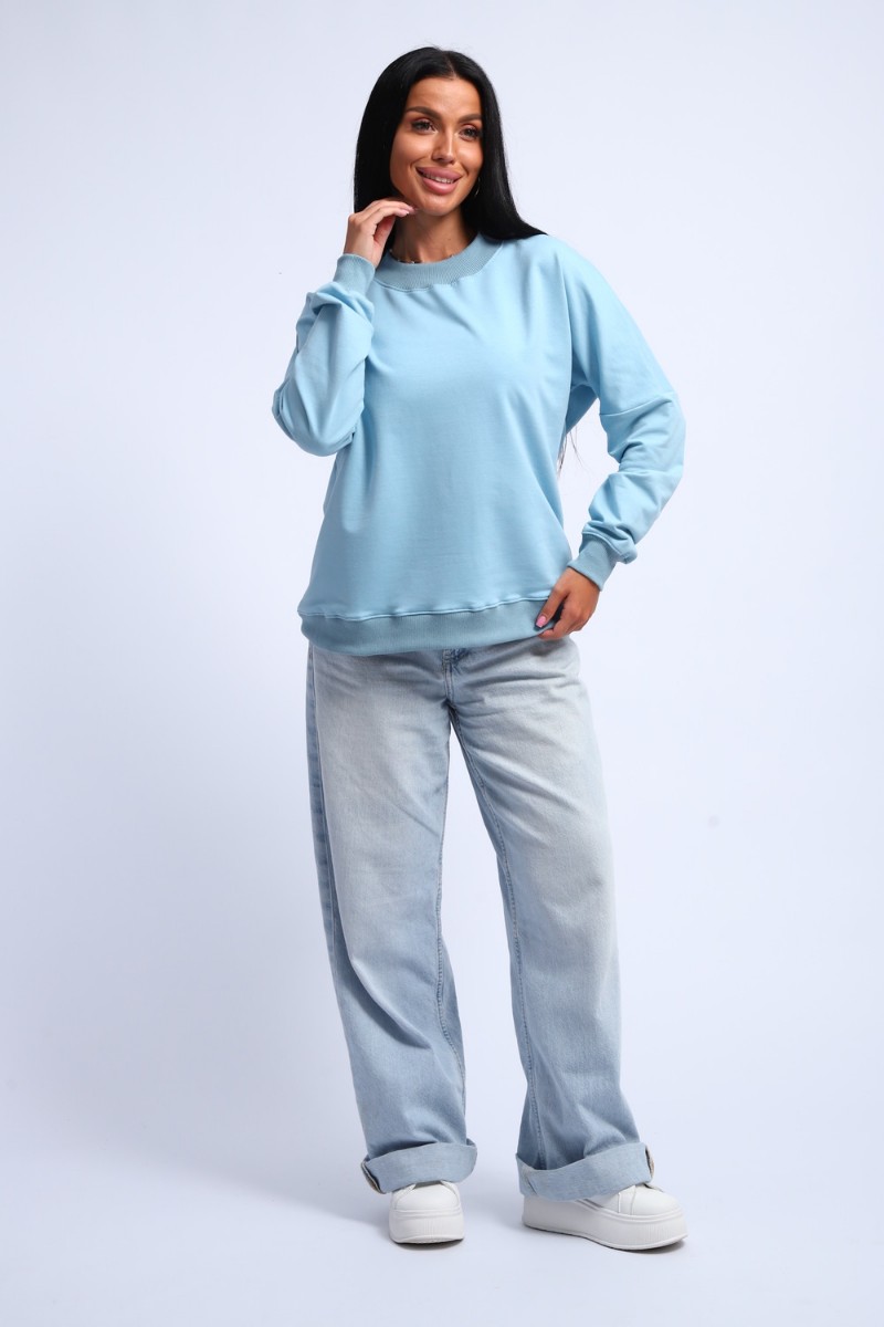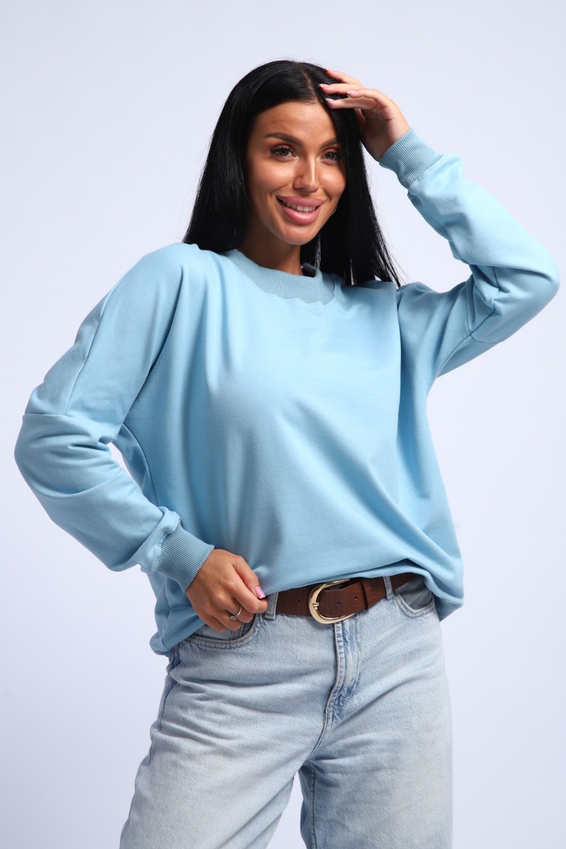 Свитшот женский №290 футер с лайкрой 2-х нитка (р-ры: 44-54) голубой