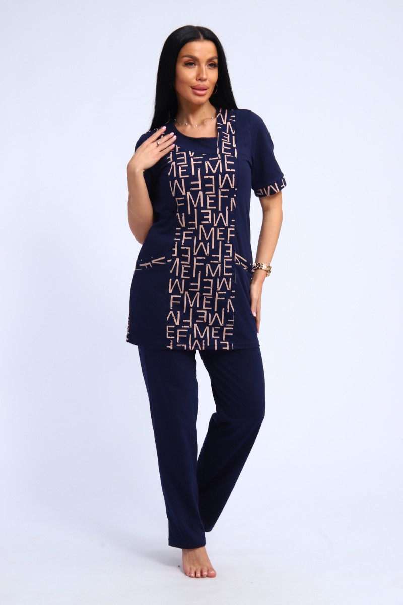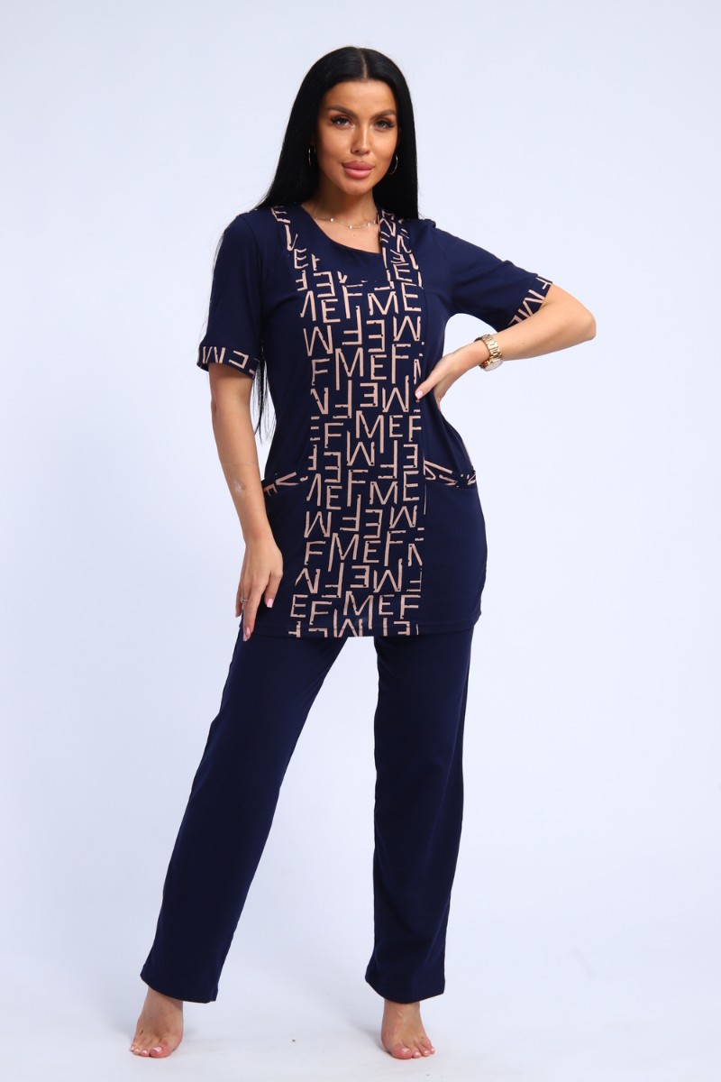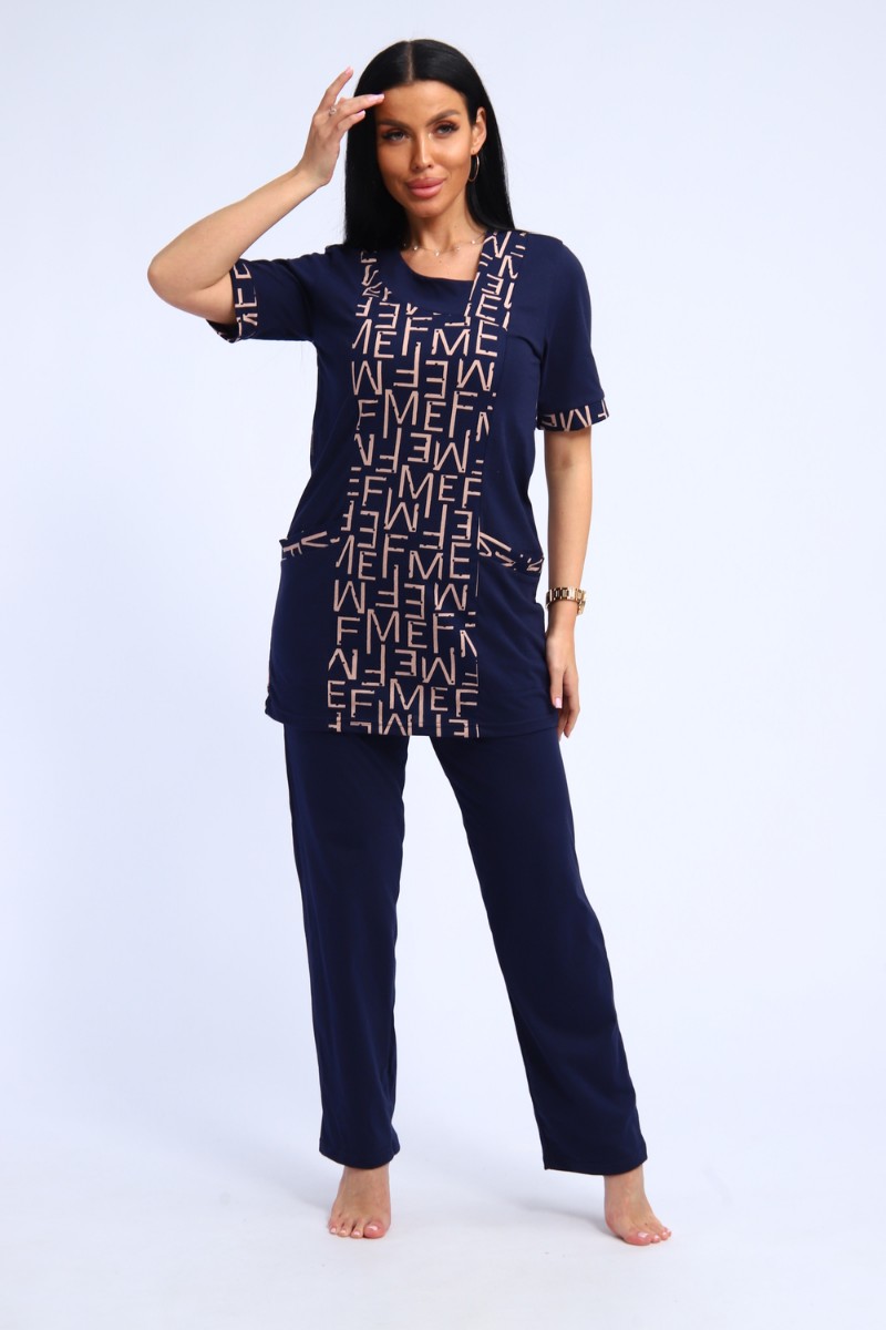 Костюм двойка женский №346 кулирка (р-ры: 46-60) темно-синий