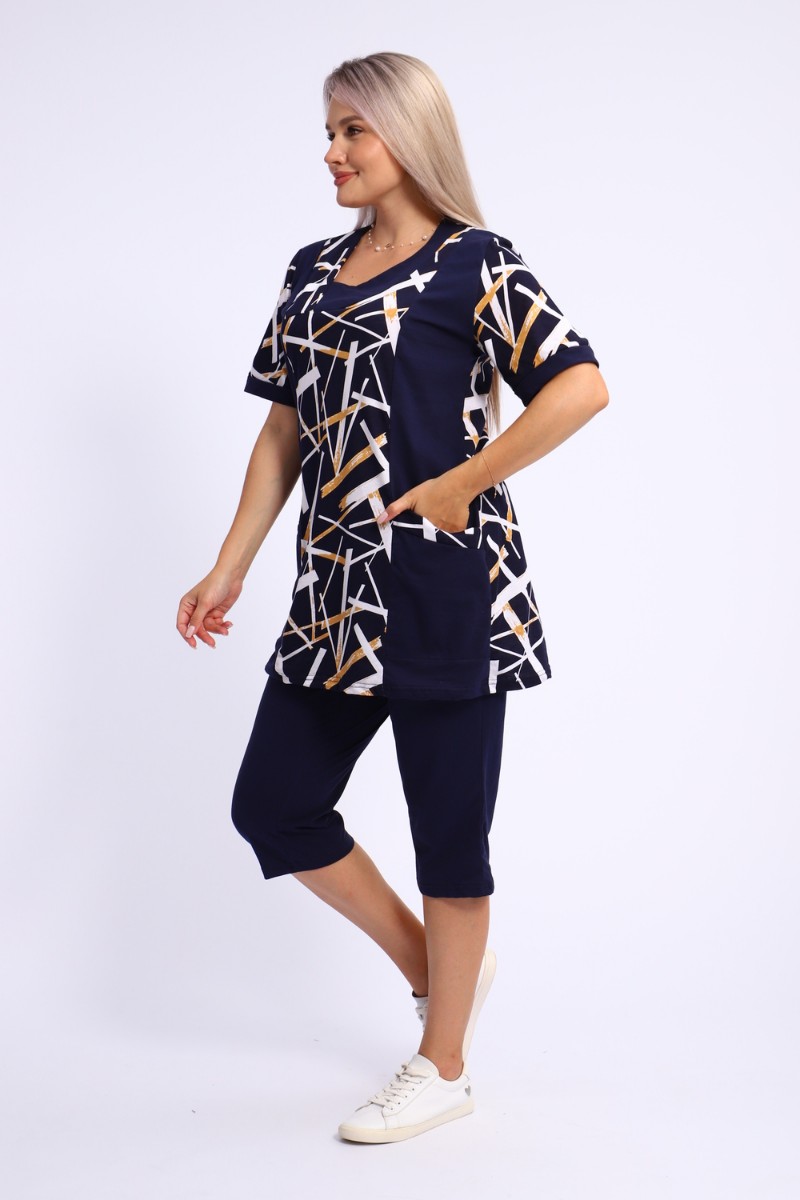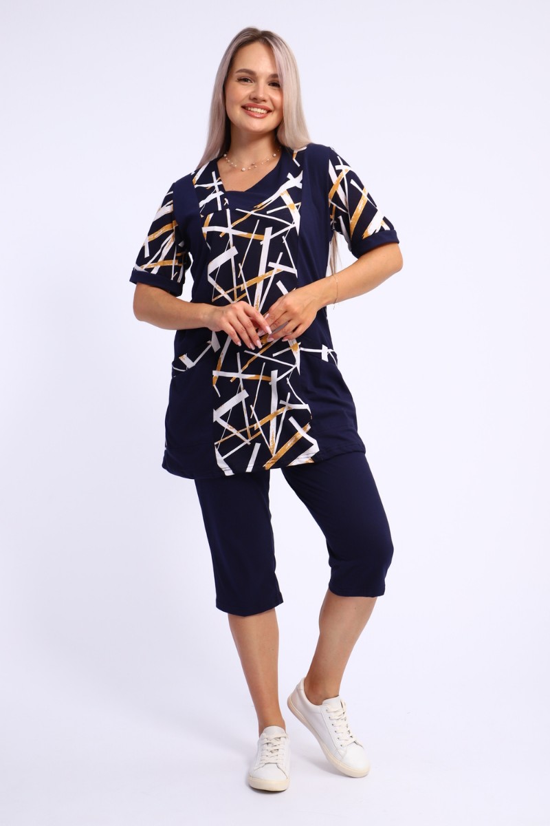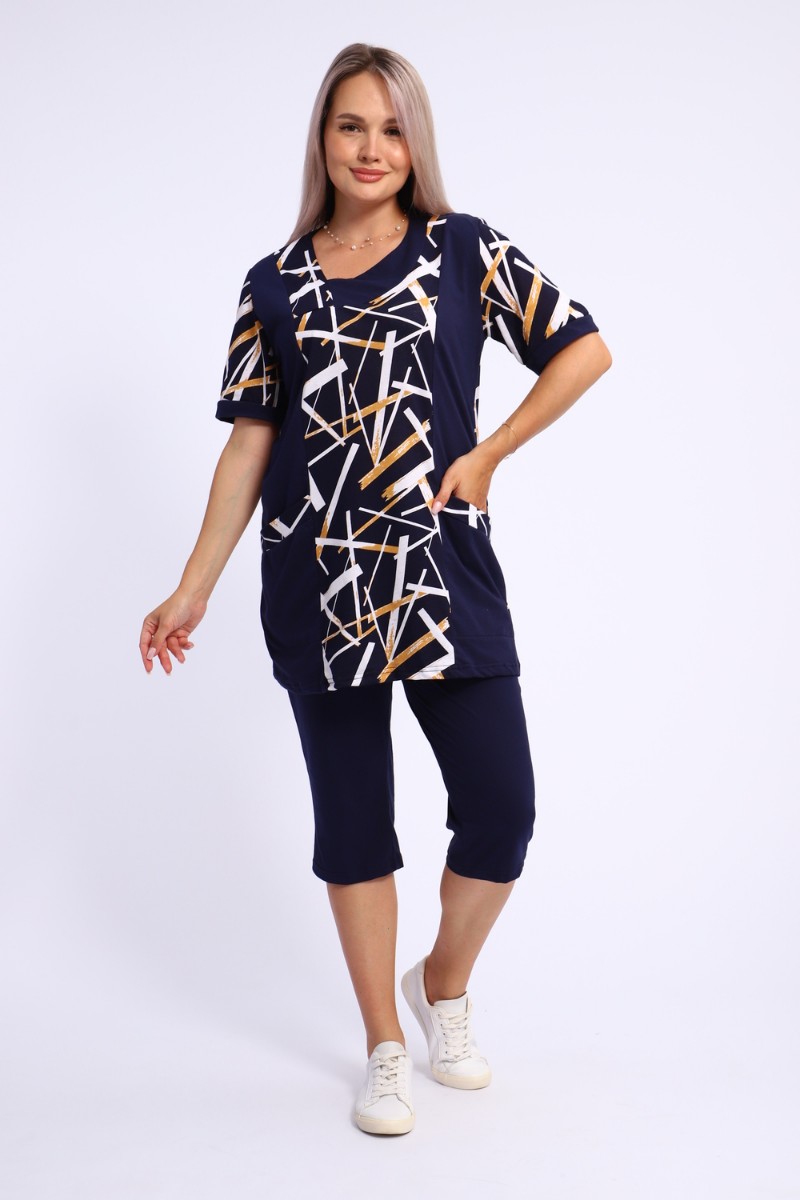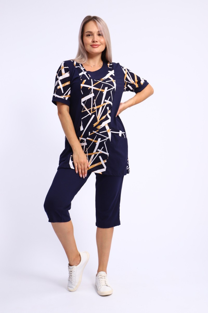 Костюм двойка женский №260 кулирка (р-ры: 50-68) темно-синий