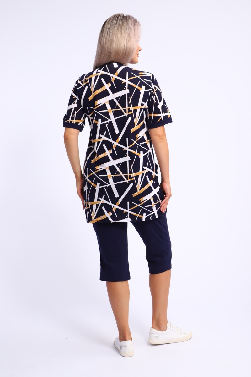 Представляем Вашему вниманию легкий женский костюм двойку, который состоит из туники и бриджей. Туника полуприлегающего силуэта с короткими рукавами и карманами. Бриджи на резинке. Сшито из 100% хлопка - натуральный, приятный телу материал, позволяющий коже дышать.