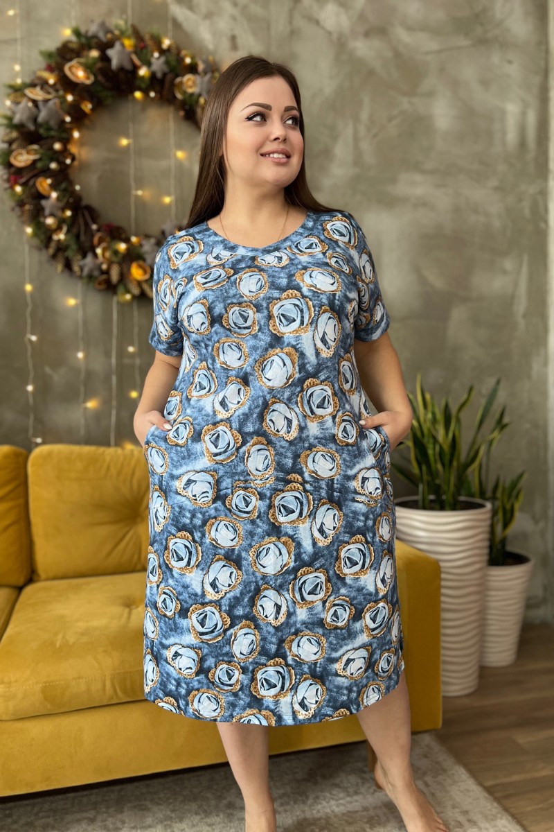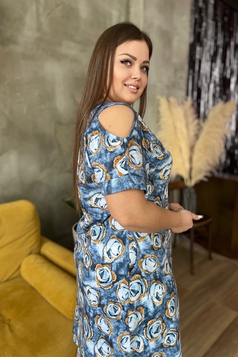 Представляем Вашему вниманию платье женское с V-образным вырезом, рукава с открытым плечом, по низу рукавов планка, по низу изделия разрезы. На модели 52 размер. Сшито из высококачественной кулирки - 100% хлопок.