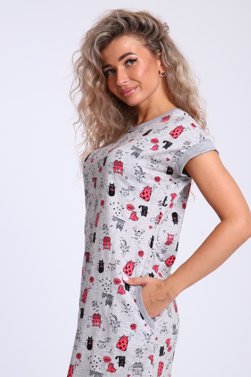 Платье женское ПлД-00-010 кулирка (последний размер) котики 50-52,54-56