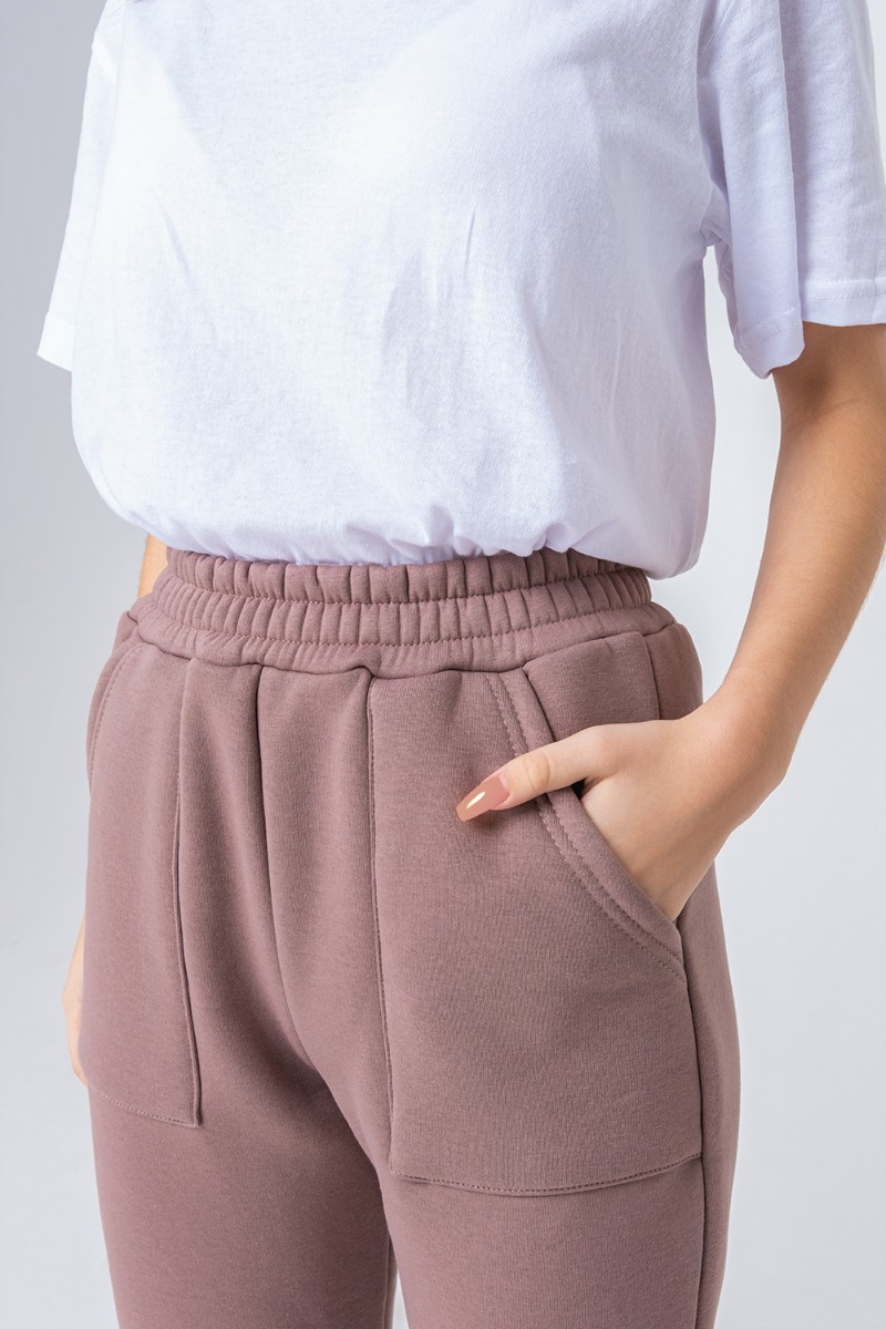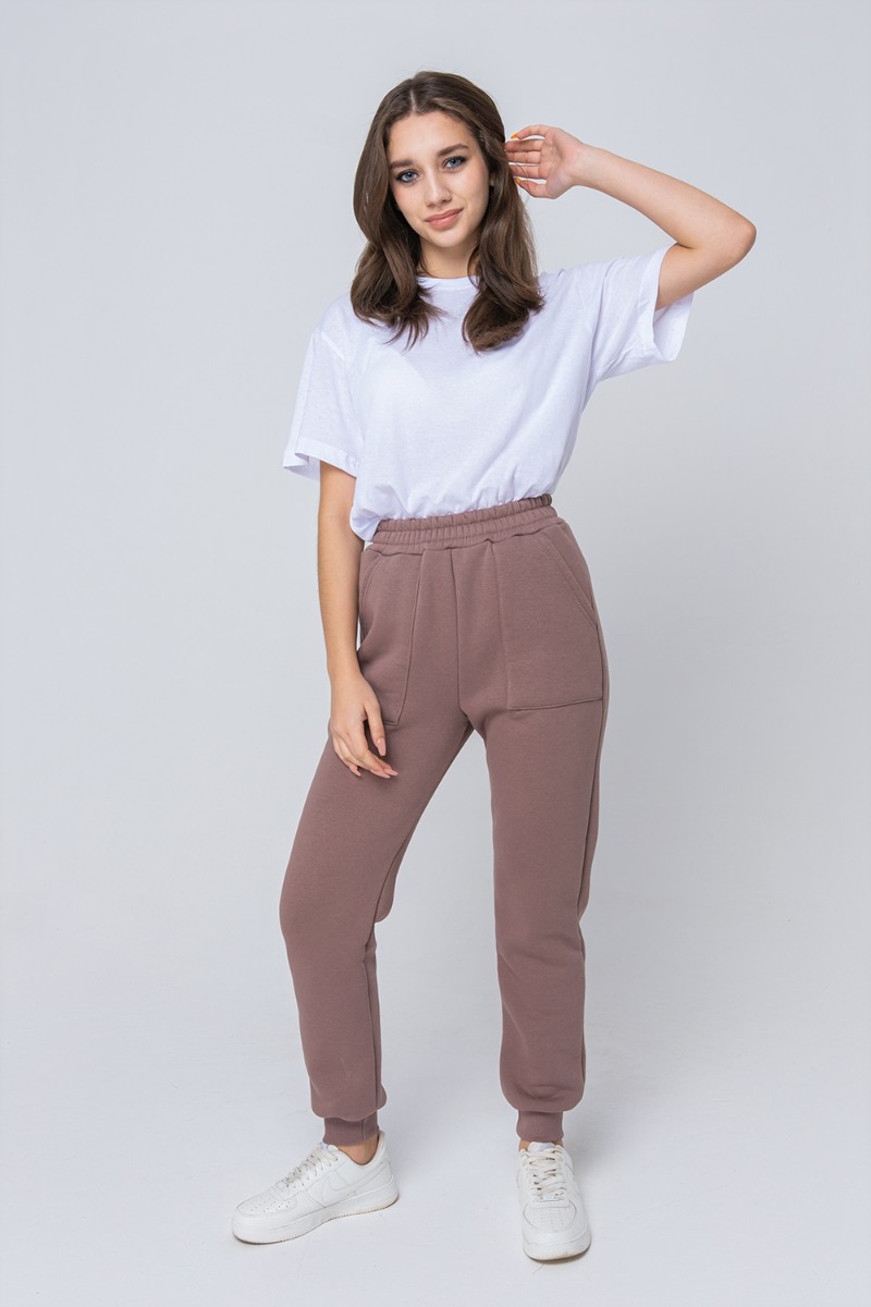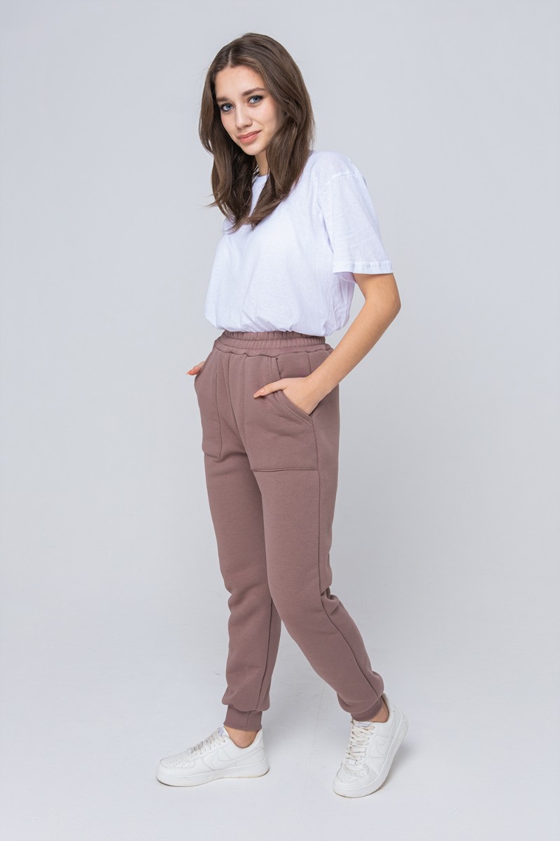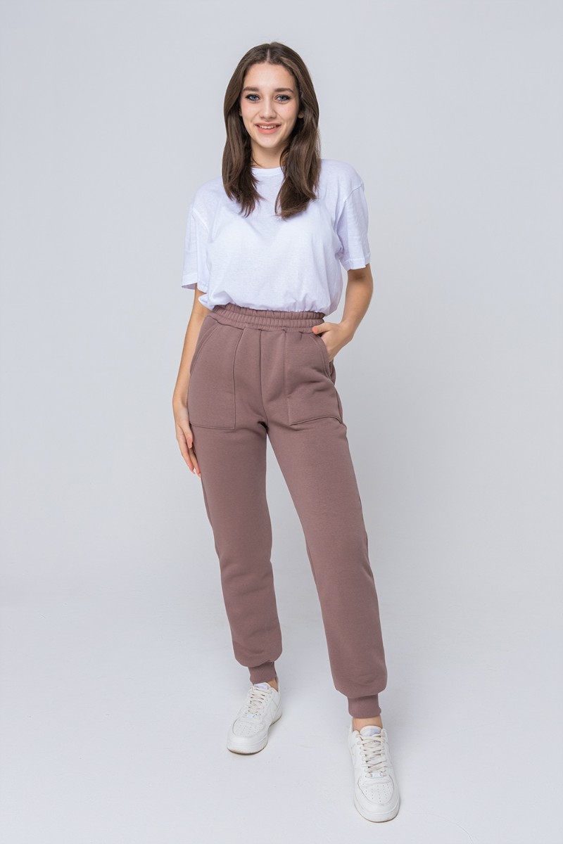 Брюки женские №8293 футер 3-х нитка с начесом (последний размер) капучино 52