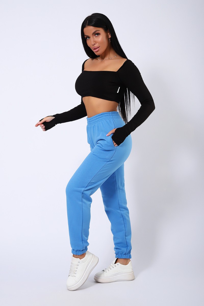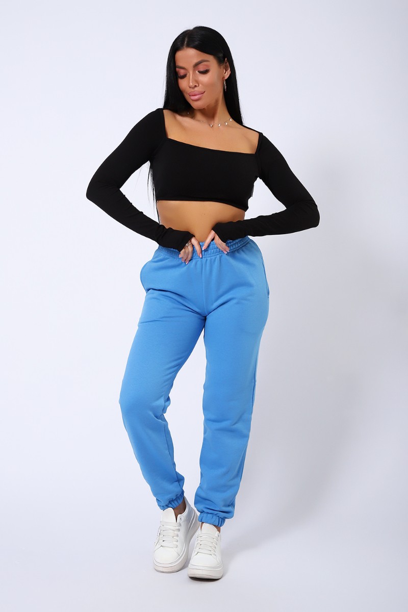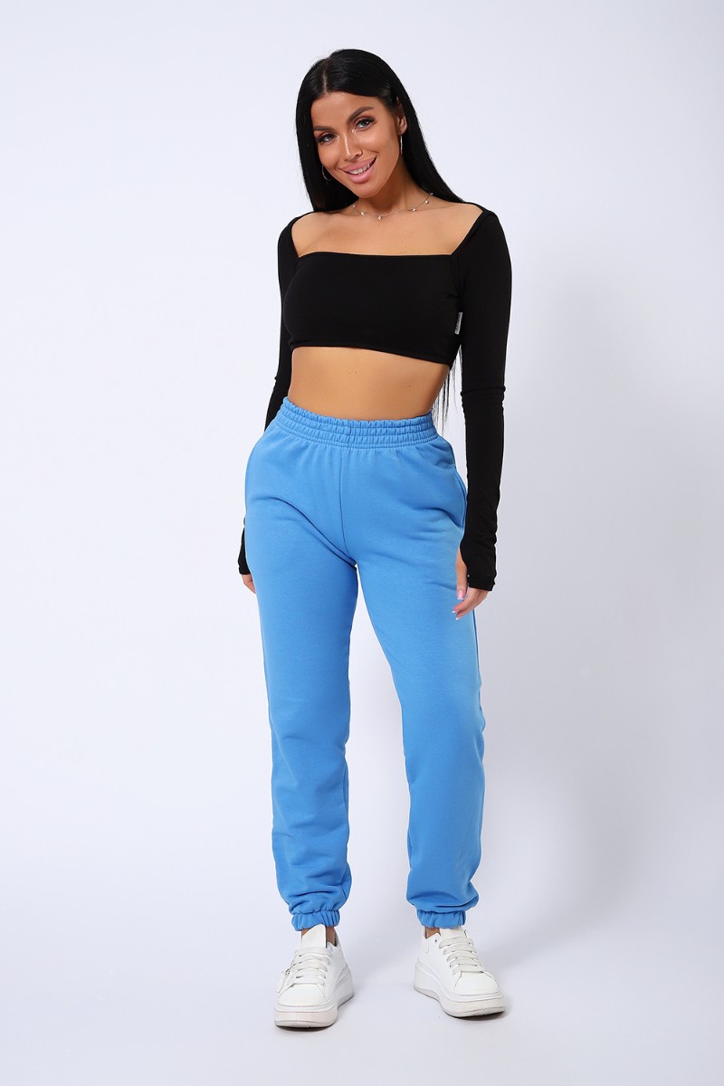 Брюки женские КБФ-1071 футер 3-х нитка (последний размер) голубой 48,50
