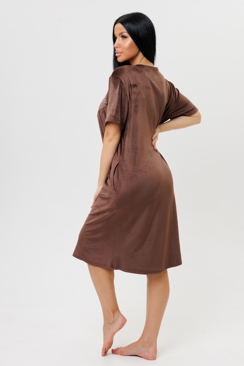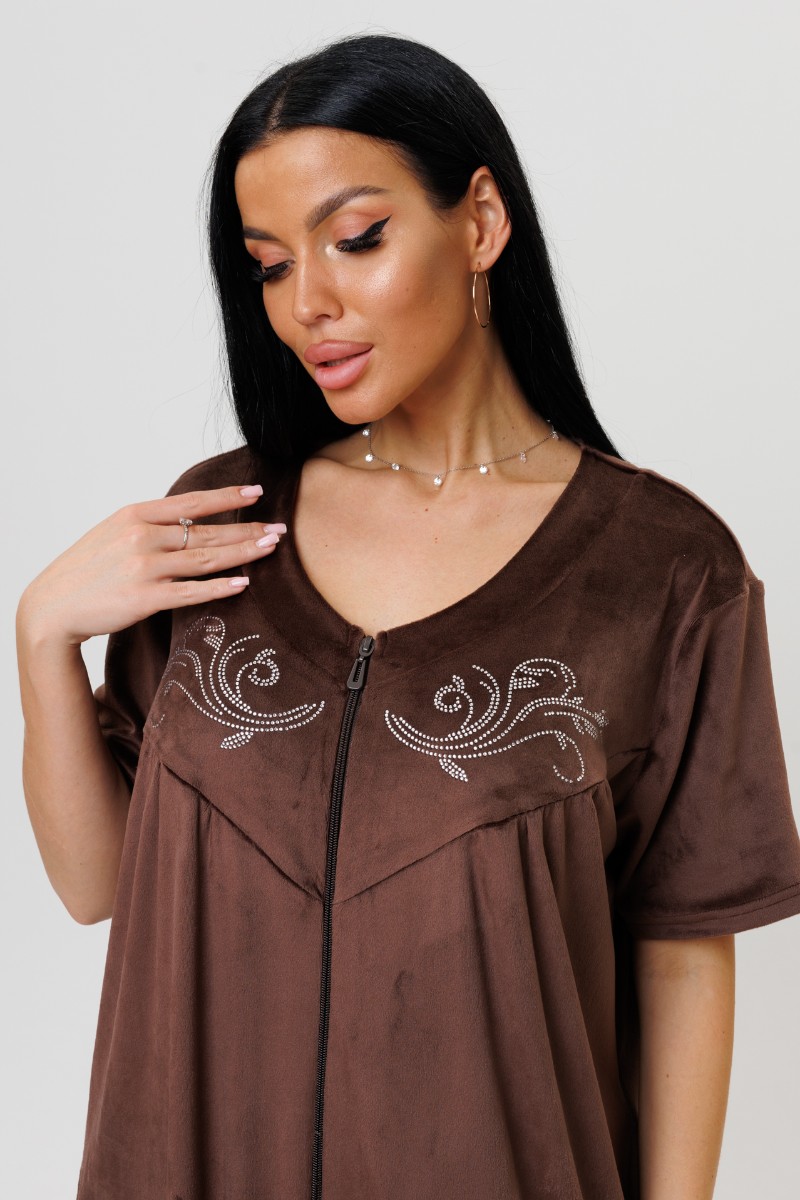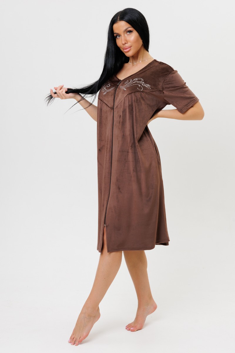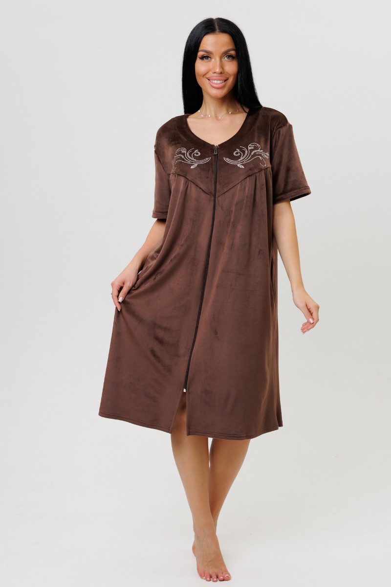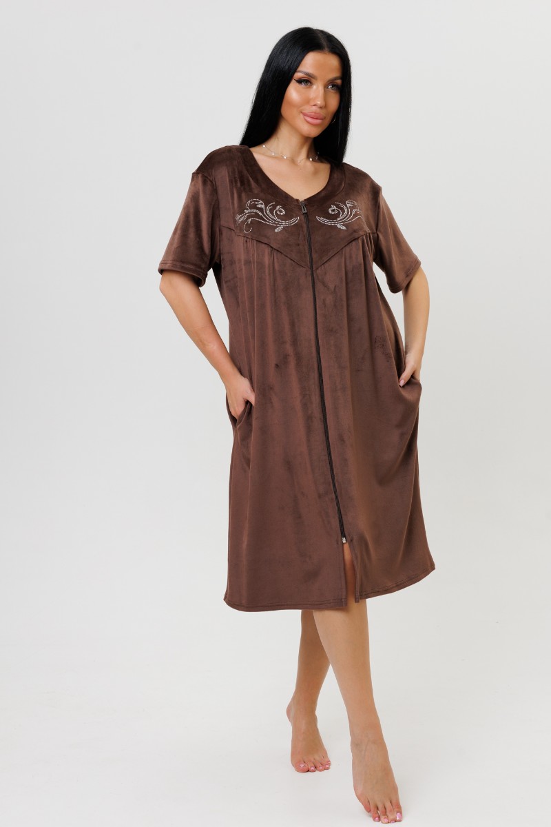 Халат женский 2229/1 велюр (последний размер) шоколад 58