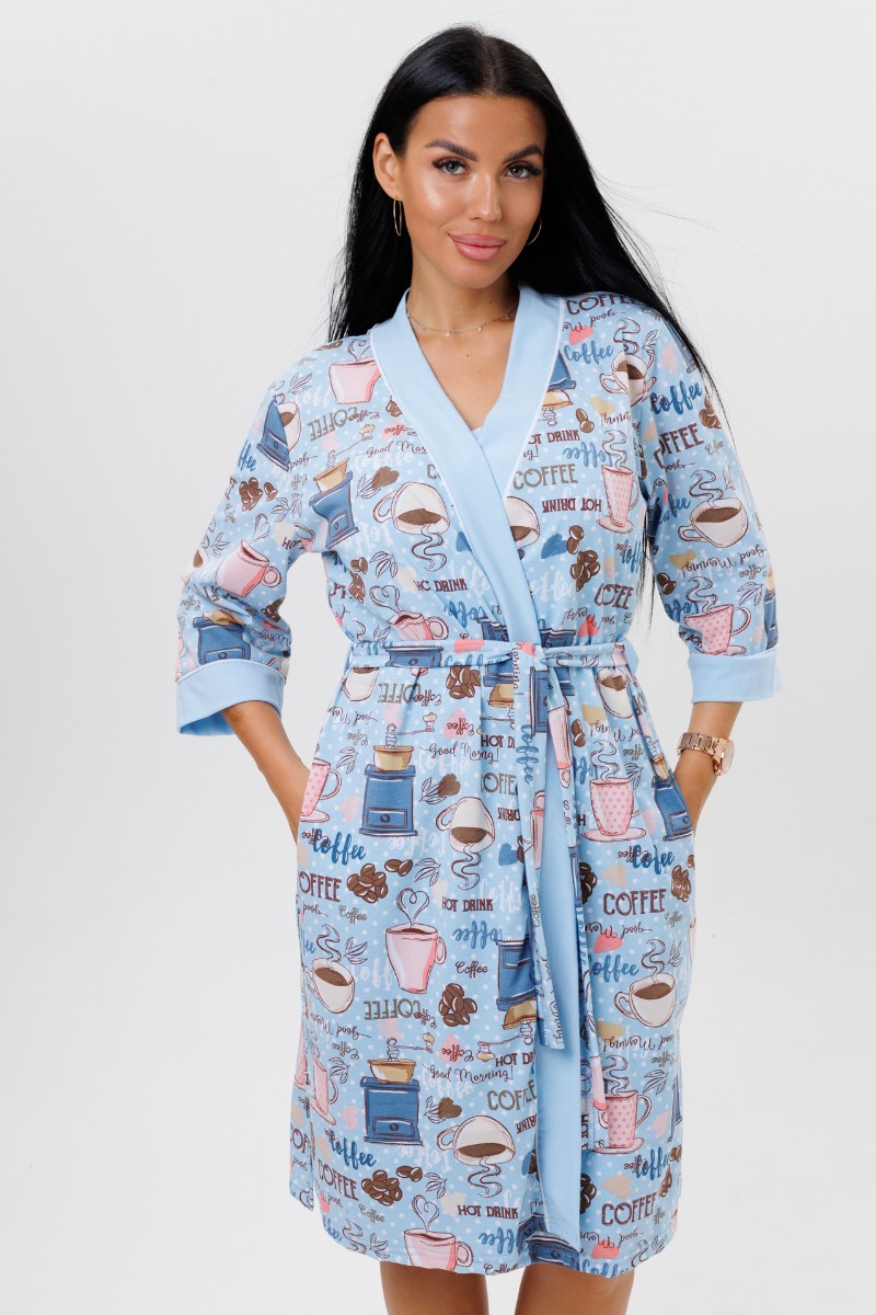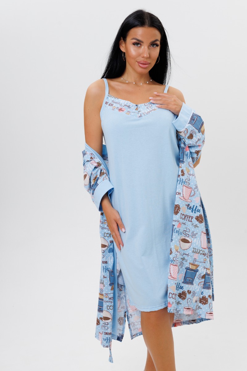 Пеньюар двойка женский 2089 кулирка (последний размер) голубой 54,56