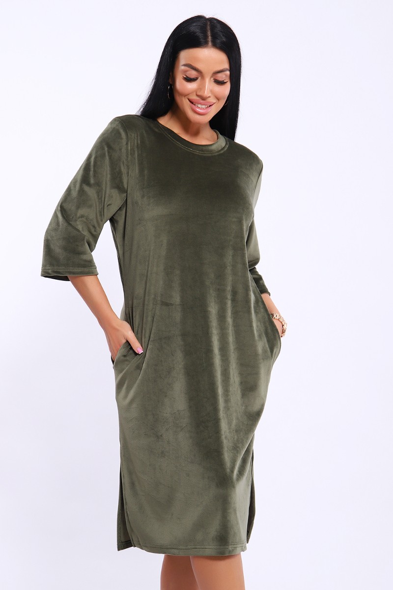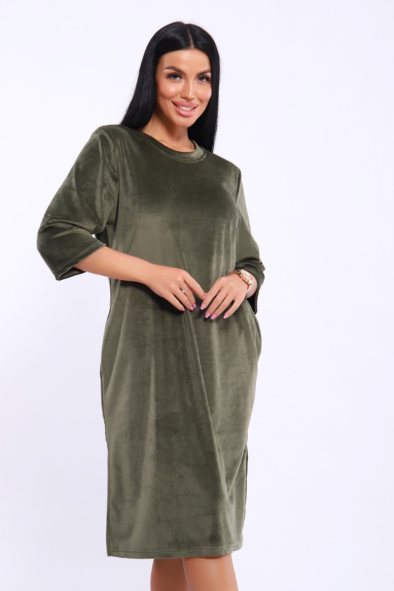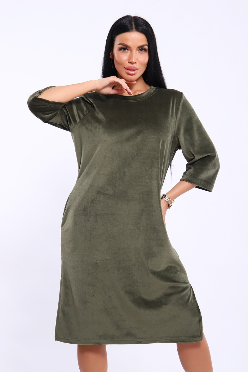 Туника женская №71137 велюр (последний размер) хаки 52,56,62