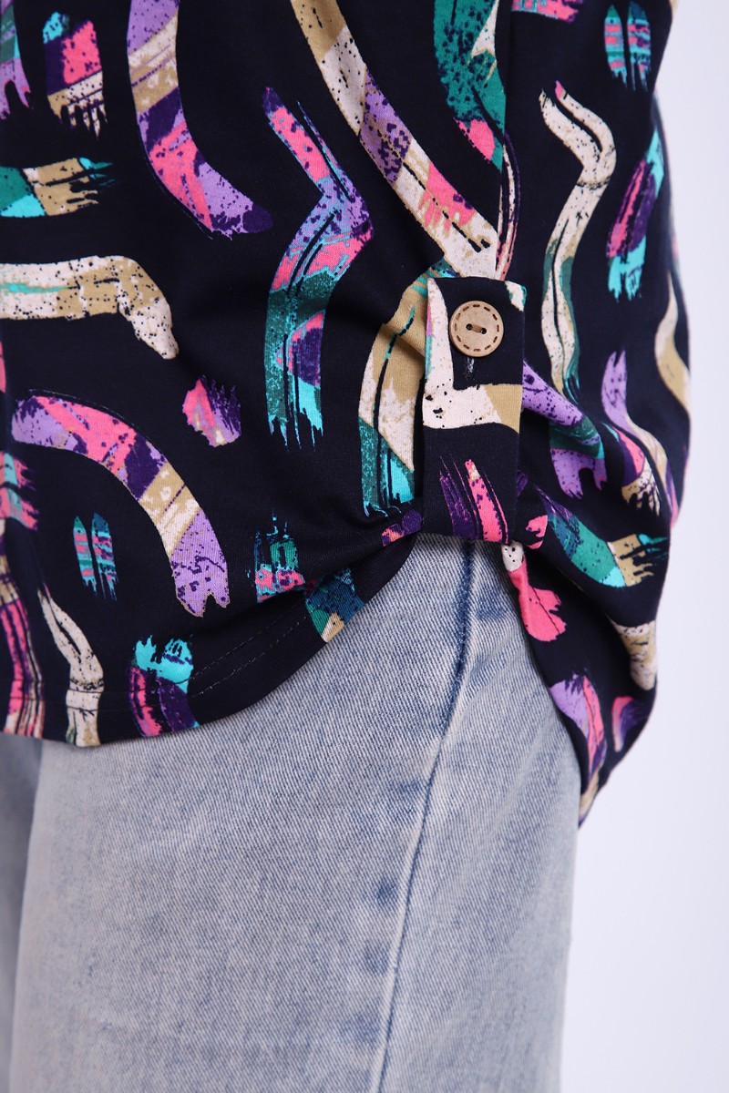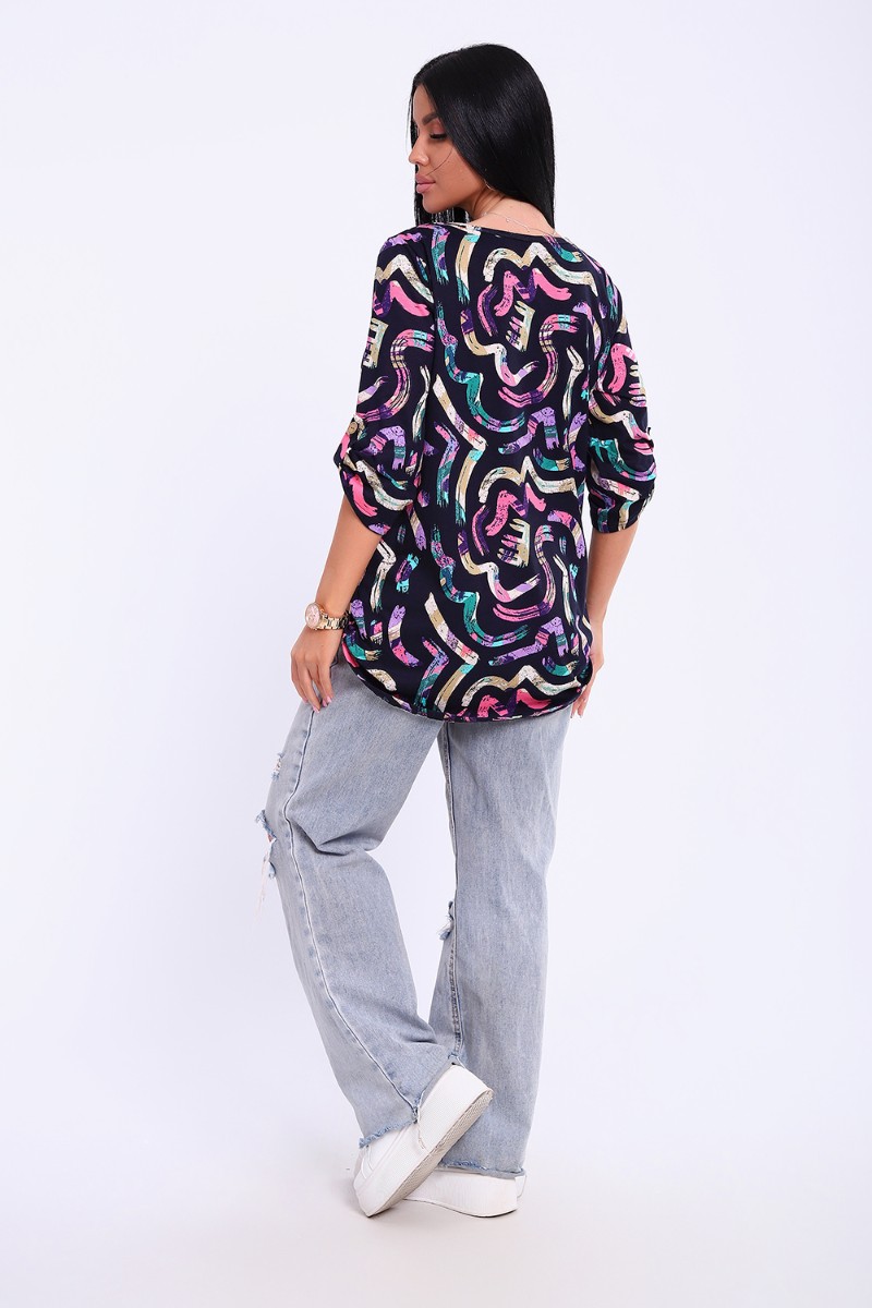 Представляем Вашему вниманию женскую универсальную тунику с рукавом 3/4 с фигурным вырезом с окантовкой из основной ткани. Длина рукава регулируется патой на пуговице. Такая же регулировка находится по бокам изделия. Можно носить как с опущенной патой, так и собранной на декоративную пуговицу. Низ изделия закруглен, перед немного укорочен. Туника отлично подойдет как для уличного, так и домашнего ношения. Прекрасно сочетается с джинсами на прогулку, с юбками и брюками в офис, с домашними брюками для дома. Большой ассортимент приятных расцветок на любой вкус. Туника прекрасно смотрится на беременных, так как выполнена в свободном стиле. Отличный подарок любимым женщинам!