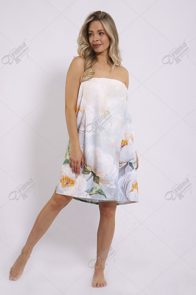 Парео женское махровое на кнопках "Пионы" рис.4