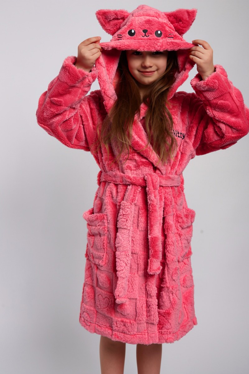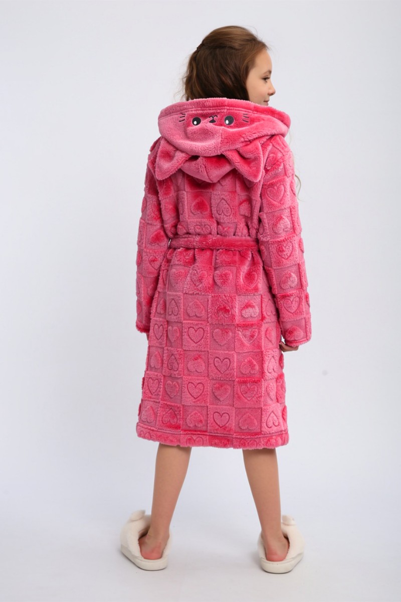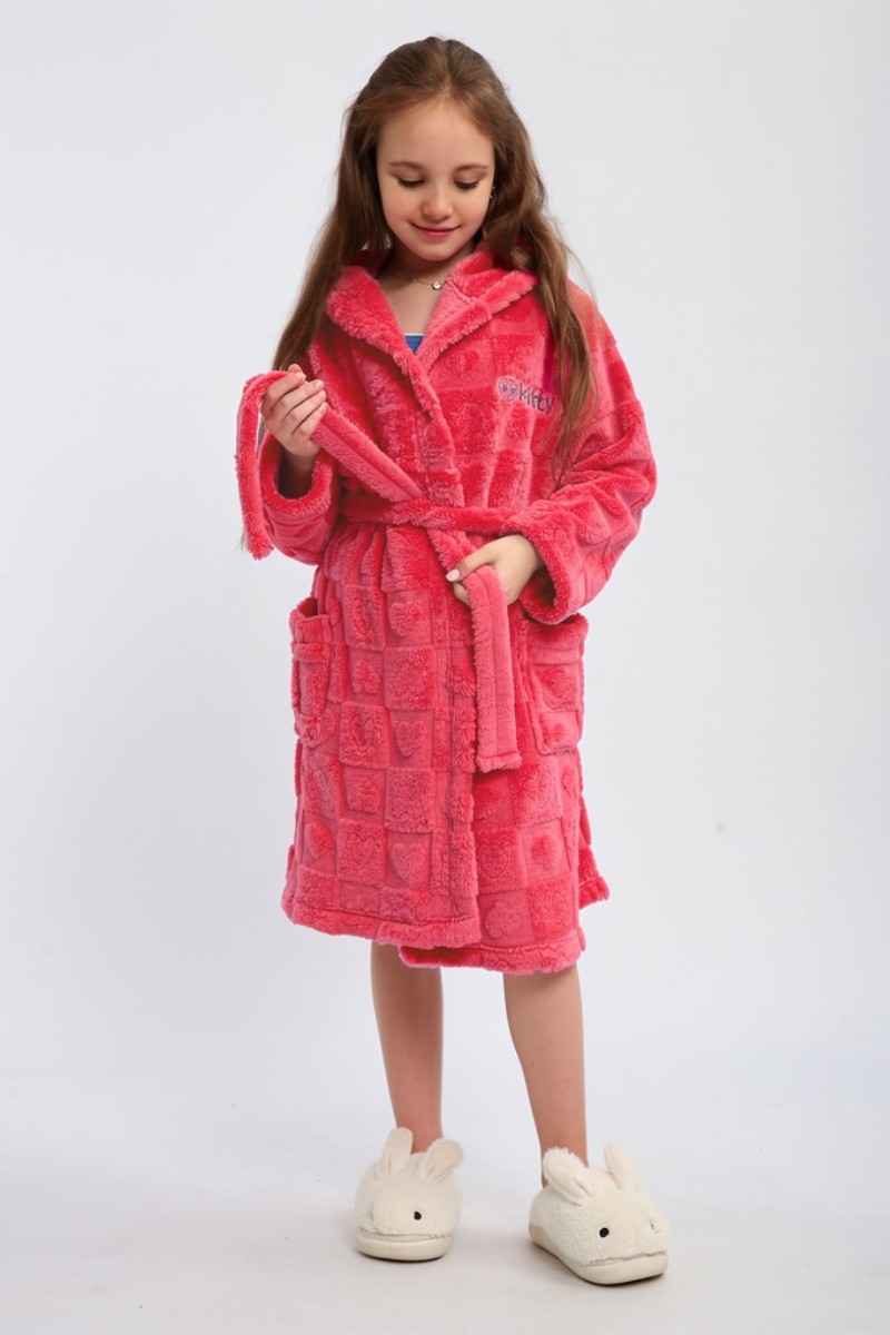 Халат детский "Отдых" велсофт (р-ры: 134-164) ярко-розовый