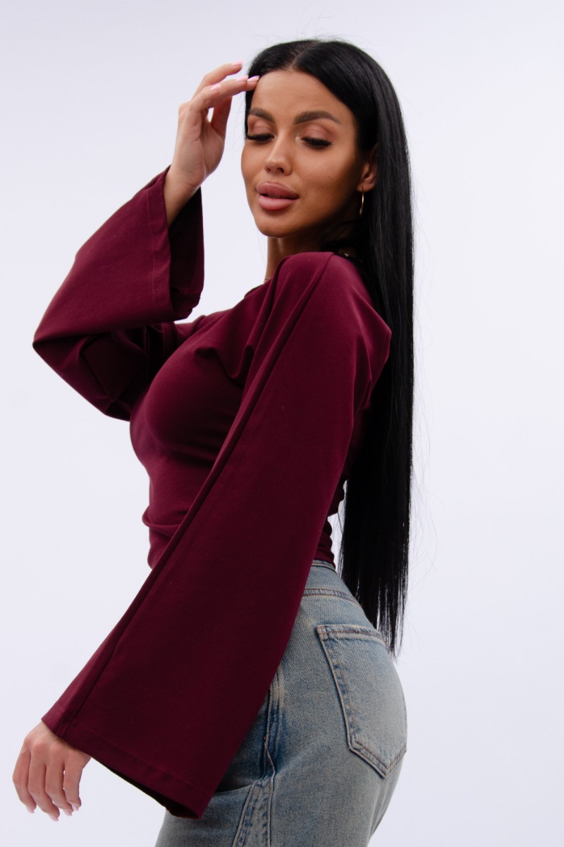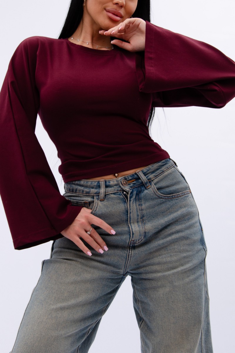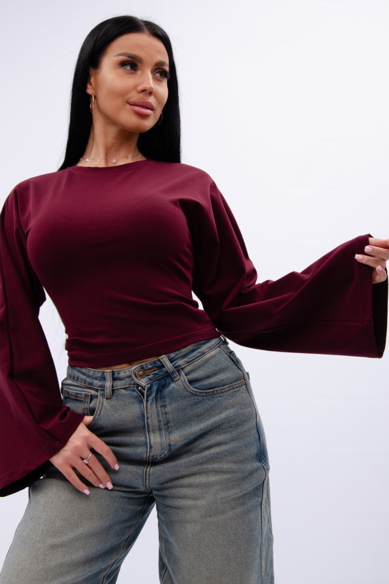 Представляем Вашему вниманию эффектный женский лонгслив с расклешенными рукавами, который отлично сочетается с любым низом, обеспечивая максимум комфорта и полную свободу движений в повседневной носке. Однотонная модель сшита из приятной телу, высококачественной кулирки - натуральной хлопок, позволяющий коже дышать.