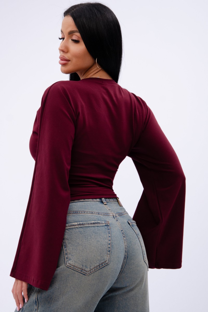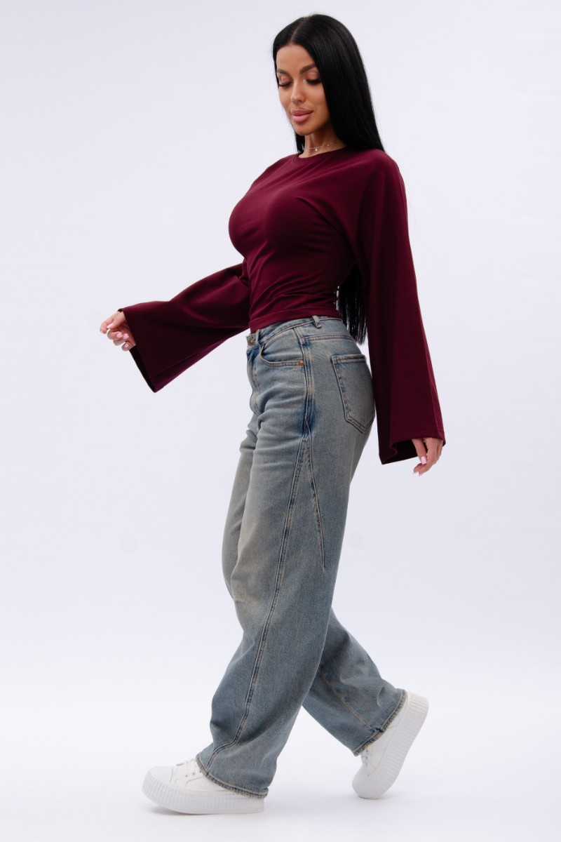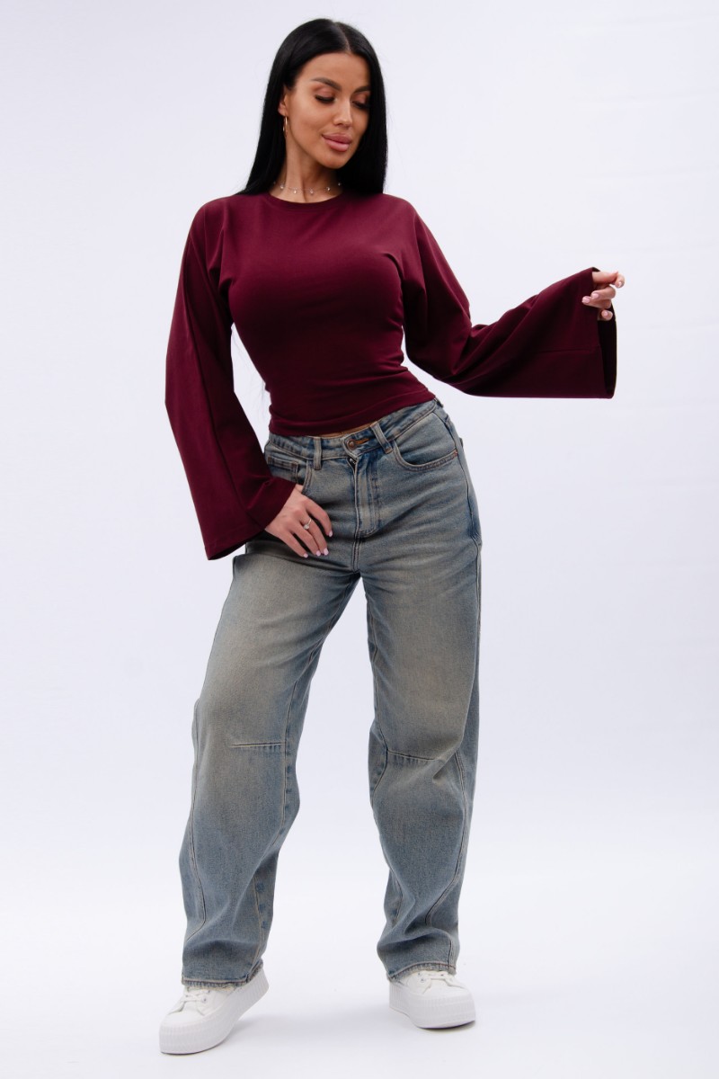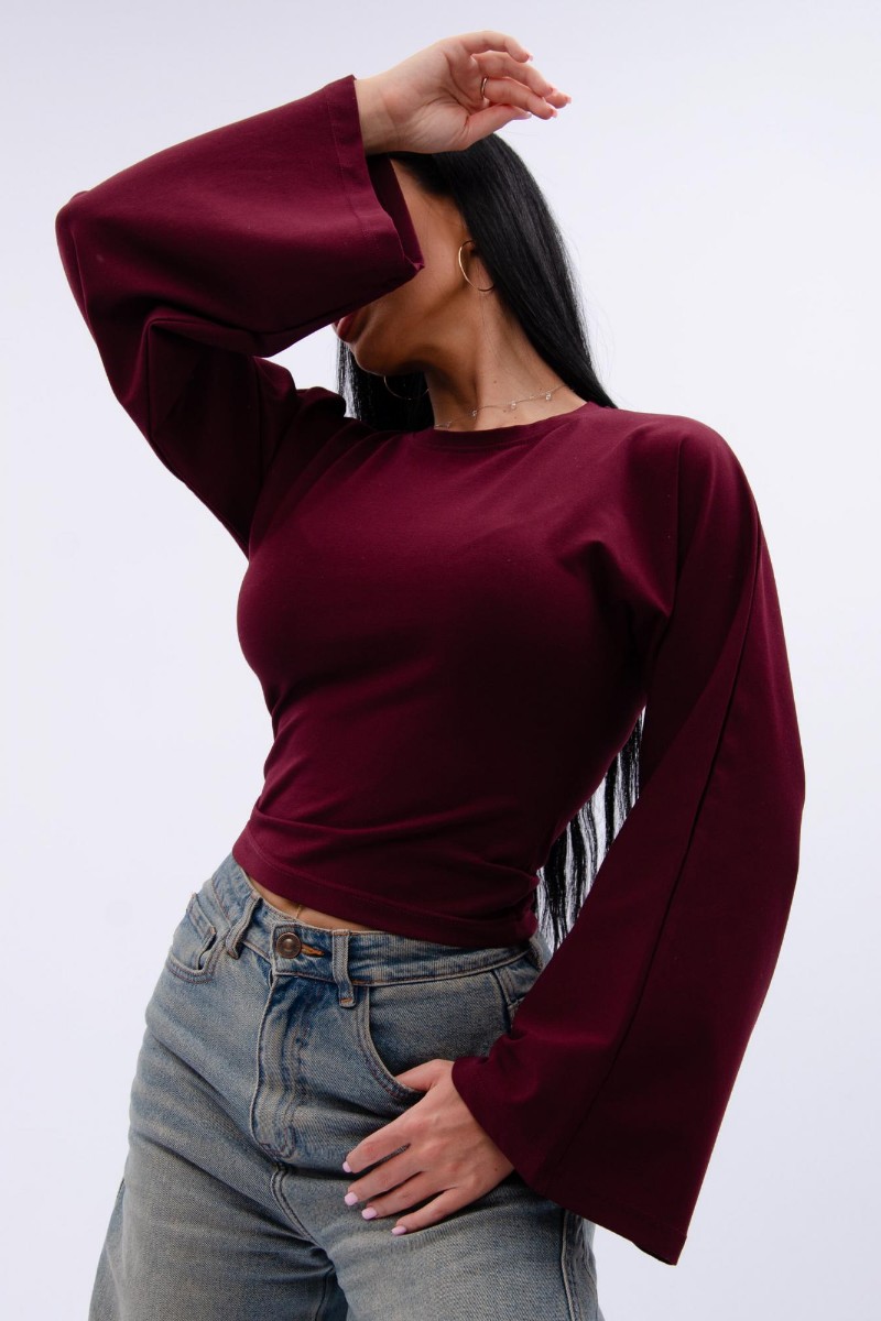 Представляем Вашему вниманию эффектный женский лонгслив с расклешенными рукавами, который отлично сочетается с любым низом, обеспечивая максимум комфорта и полную свободу движений в повседневной носке. Однотонная модель сшита из приятной телу, высококачественной кулирки - натуральной хлопок, позволяющий коже дышать.
