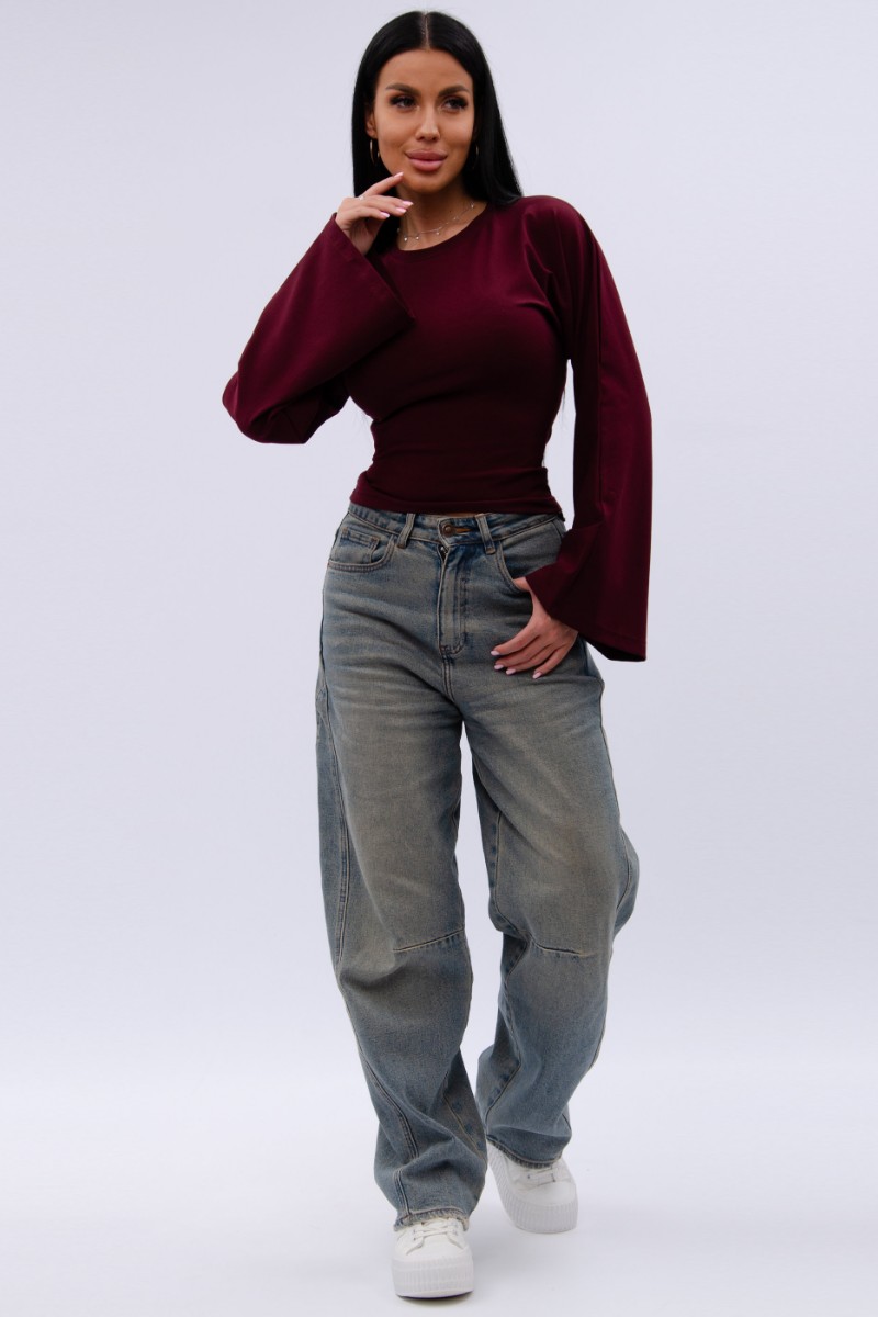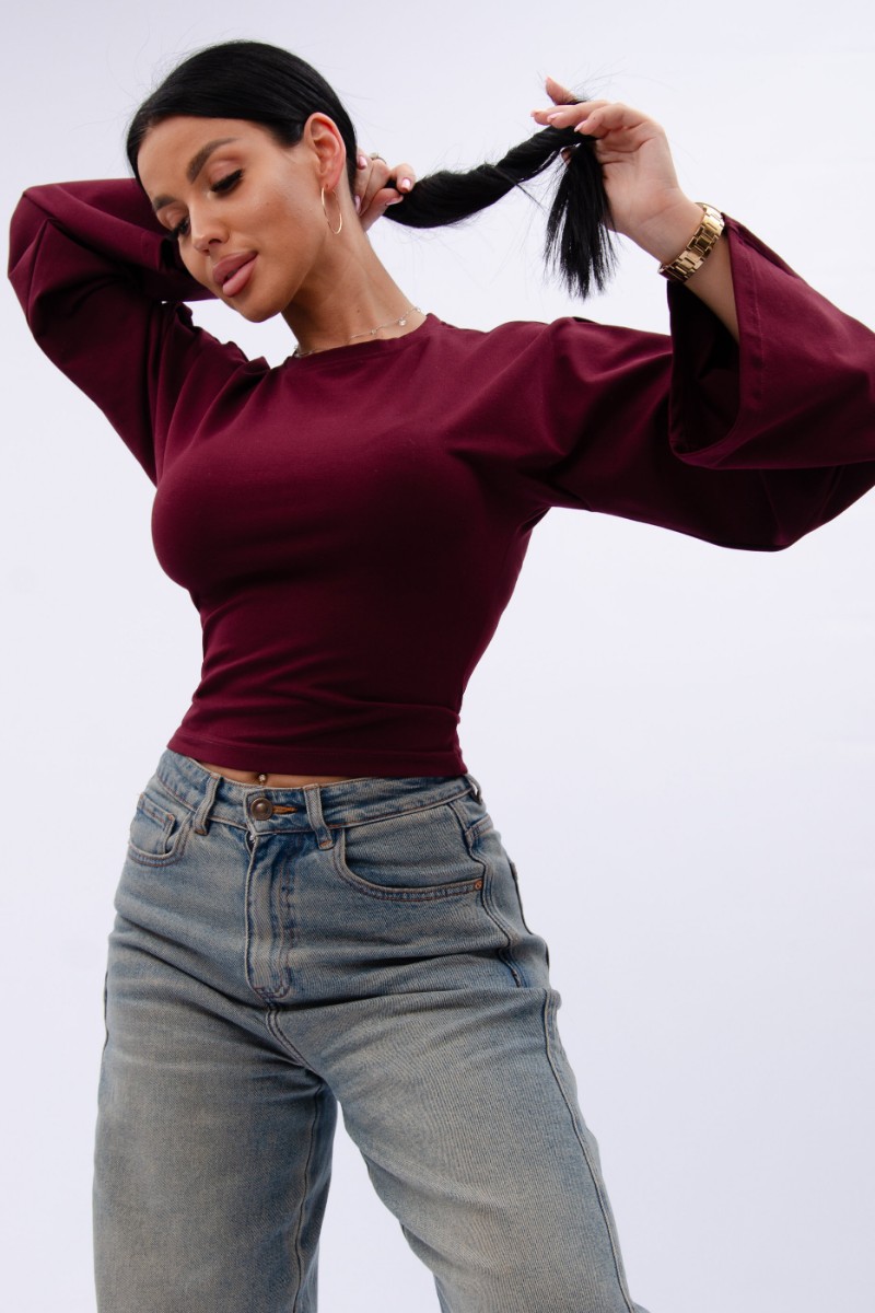 Лонгслив женский "Аида" кулирка с лайкрой (р-ры: 40-52) бордо
