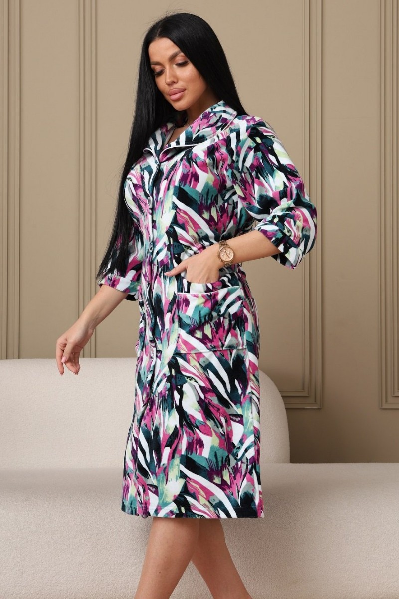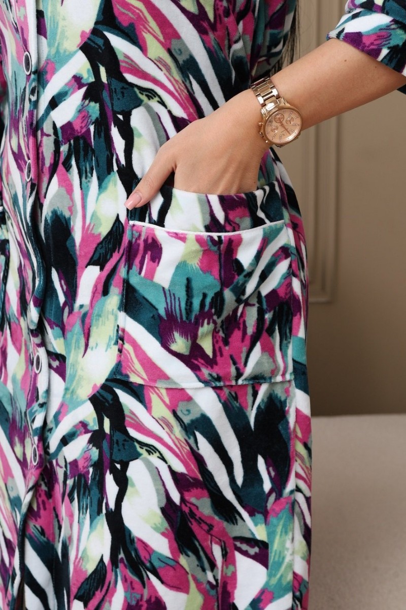 Халат женский 177 велюр (р-ры: 48-62) зеленый-малиновый-абстракция