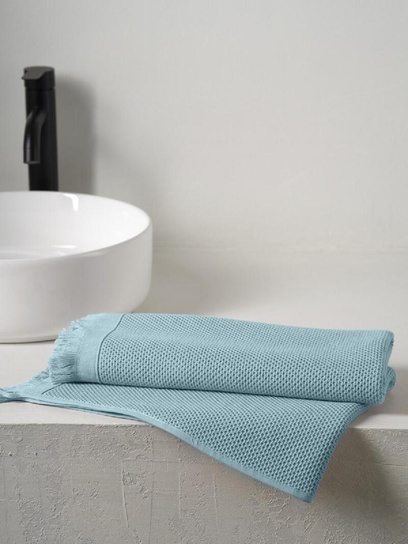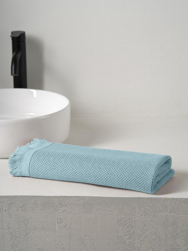 Полотенце вафельное "Canvas" с бахромой небесный