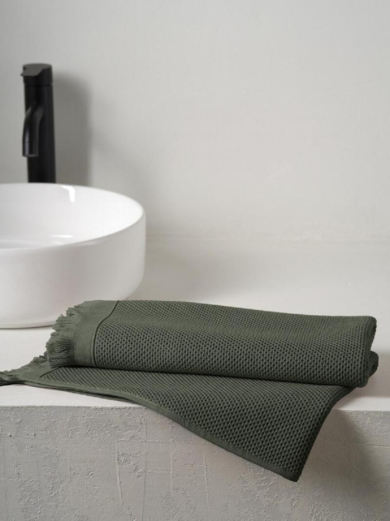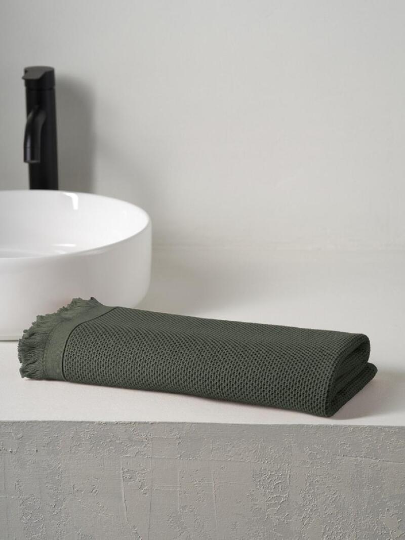 Полотенце вафельное "Canvas" с бахромой зеленый