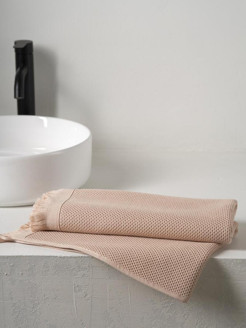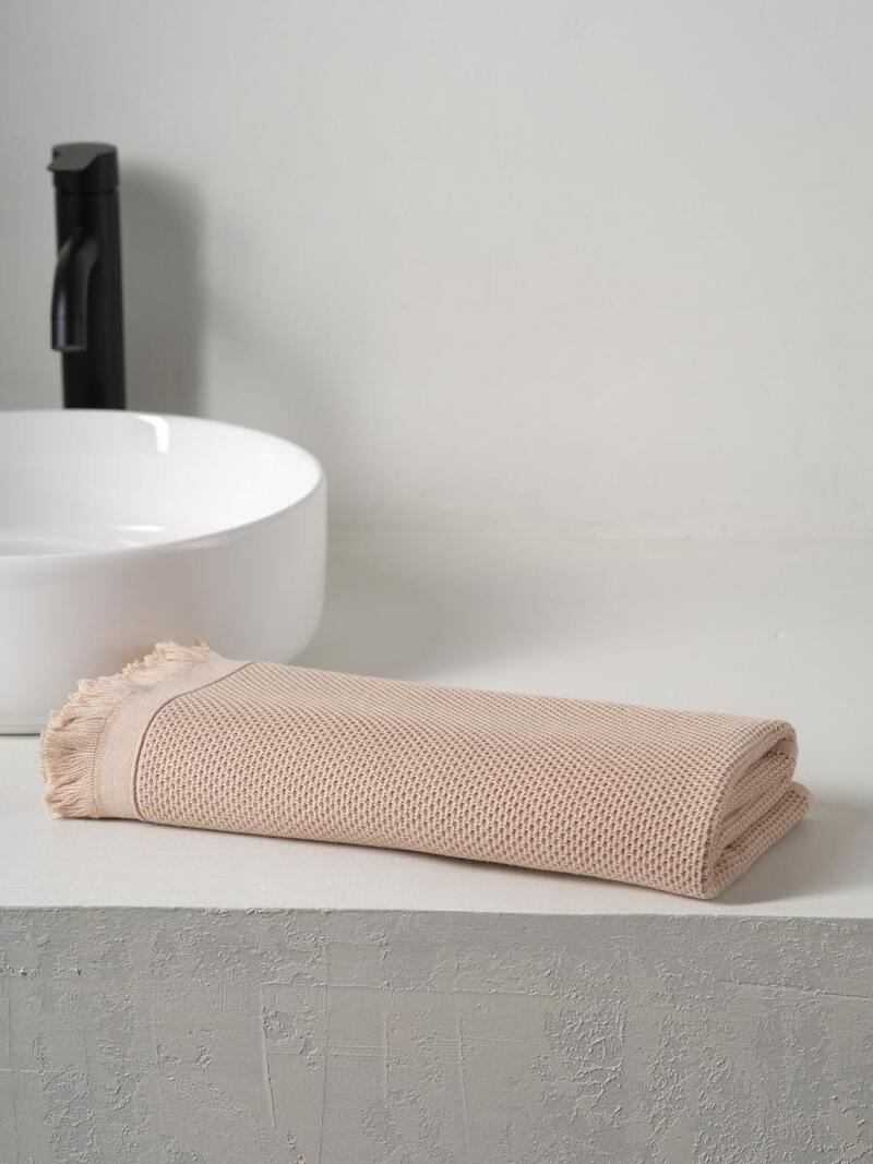 Полотенце вафельное "Canvas" с бахромой бежевый