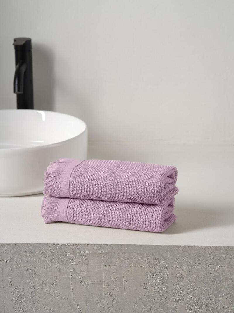 Набор вафельных полотенец "Canvas" с бахромой нежно-розовый 2 шт.