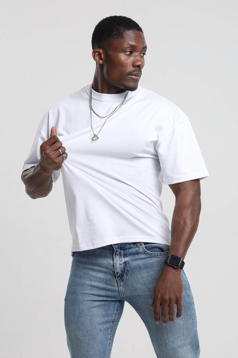Футболка мужская №18 хлопок стрейч-кулирка (р-ры: 46-56) белый